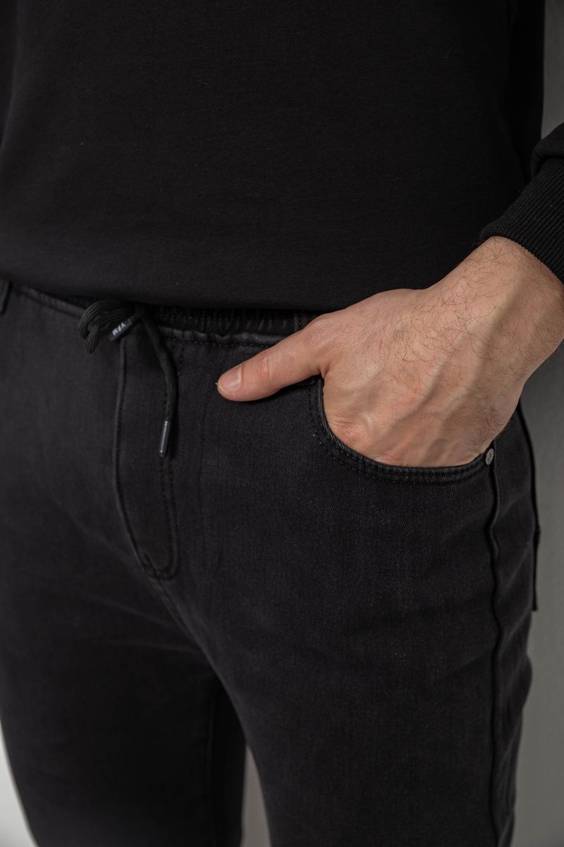 Джинси чоловічі на резинці утеплені, колір чорний, 244R666