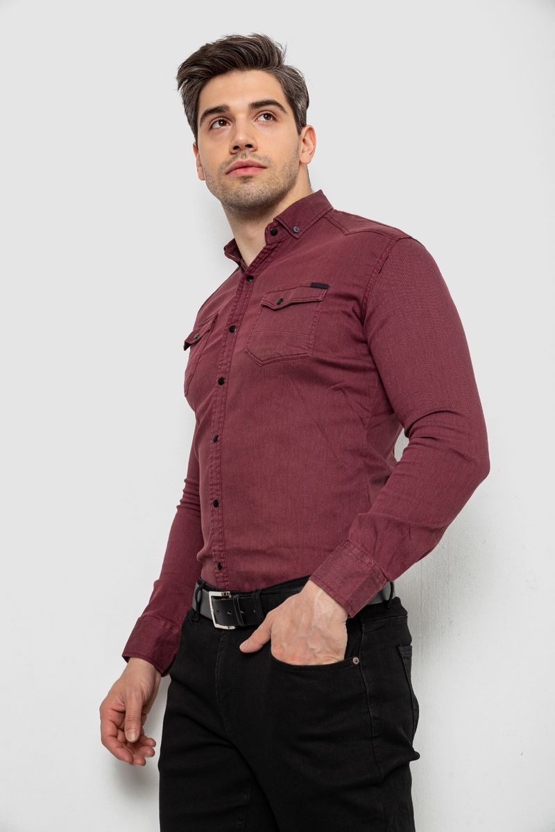 Сорочка чоловіча однотонна, колір бордовий, 214R16176