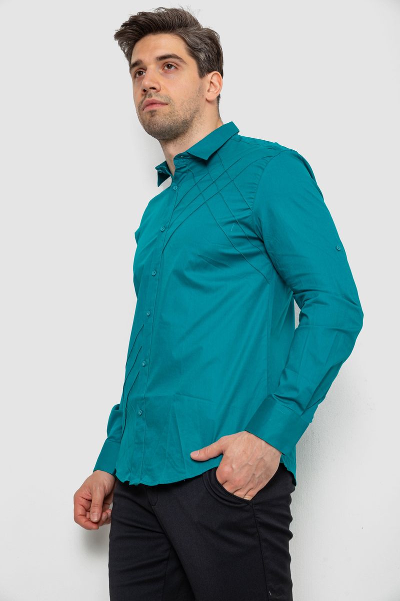 Сорочка чоловіча однотонна, колір зелений, 214R7466