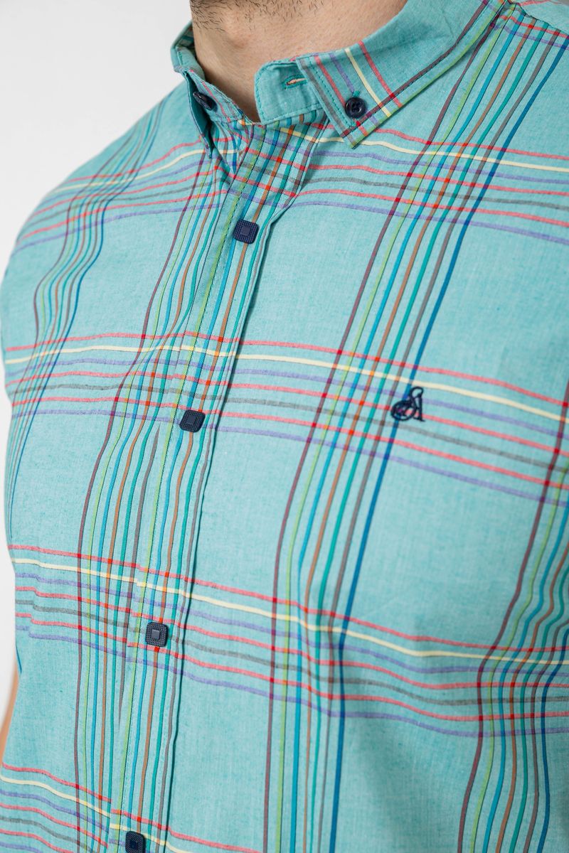 Сорочка чоловіча в клітку, колір бірюзовий, 214R244564