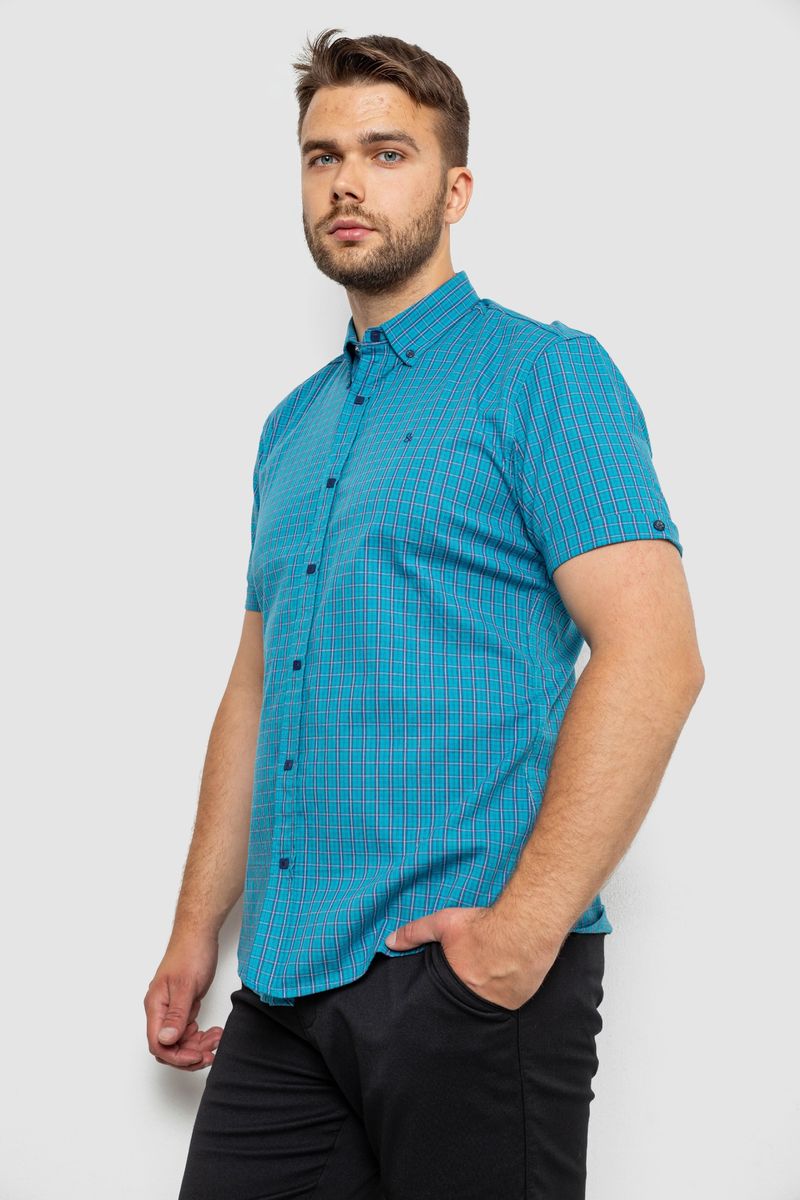 Сорочка чоловіча в клітинку, колір бірюзовий, 214R4564