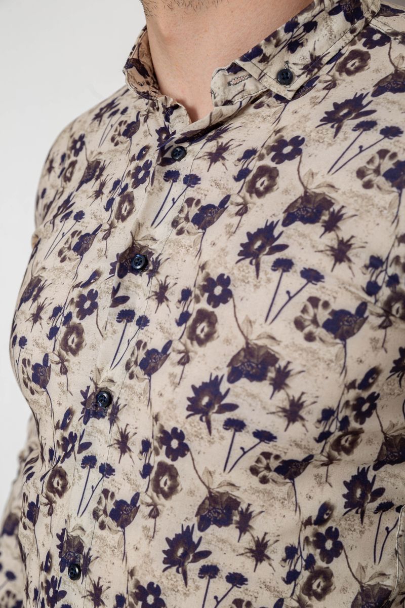 Сорочка чоловіча з принтом, колір бежевий, 214R1046