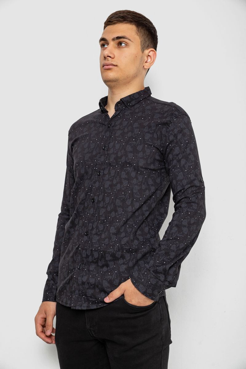 Сорочка чоловіча з принтом, колір чорний, 214R814