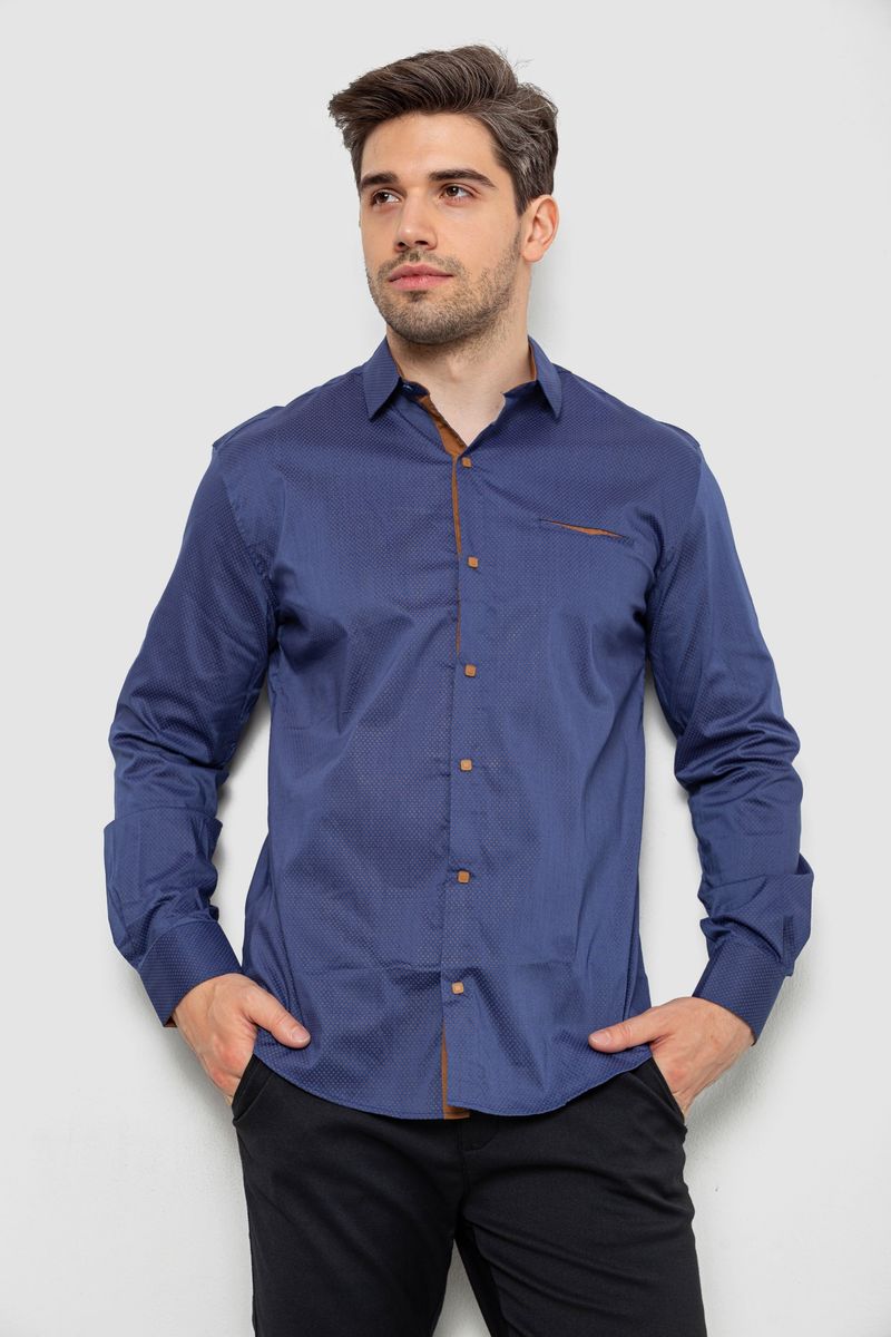 Сорочка чоловіча з принтом, колір джинс, 214R7129