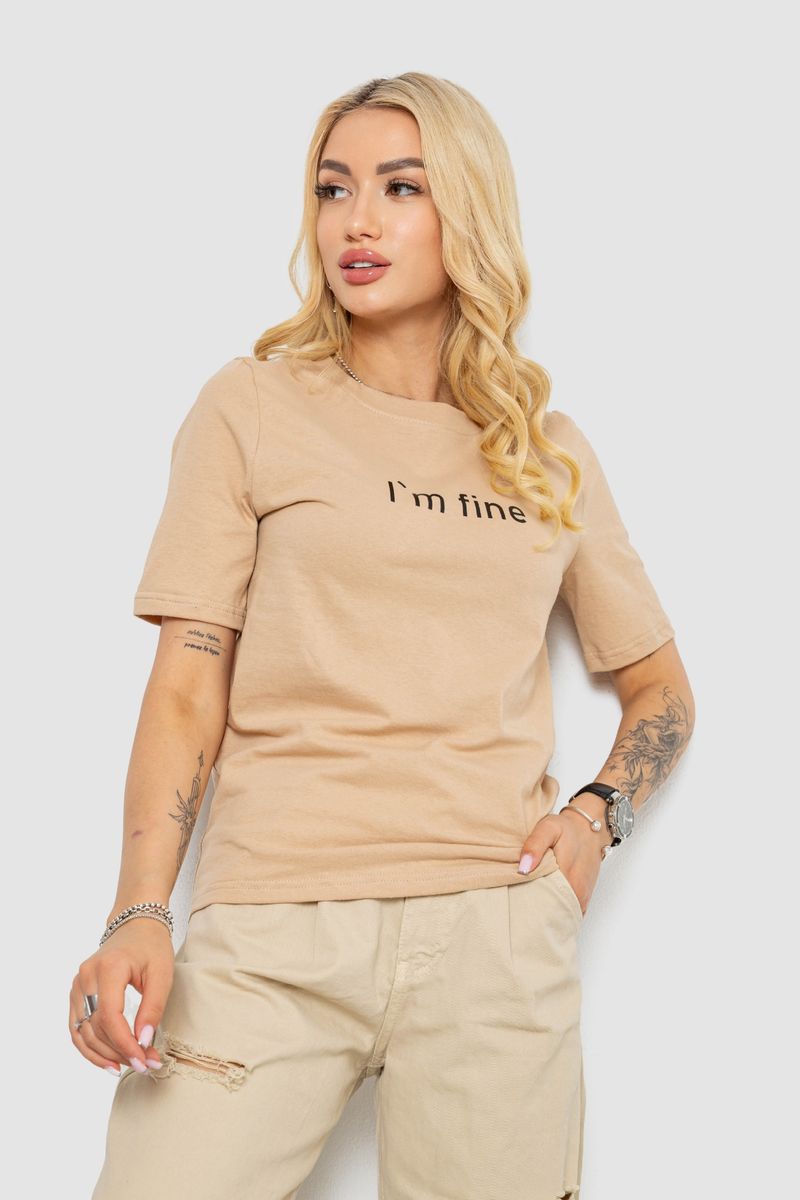 Футболка жіноча з принтом, колір бежевий, 241R1833