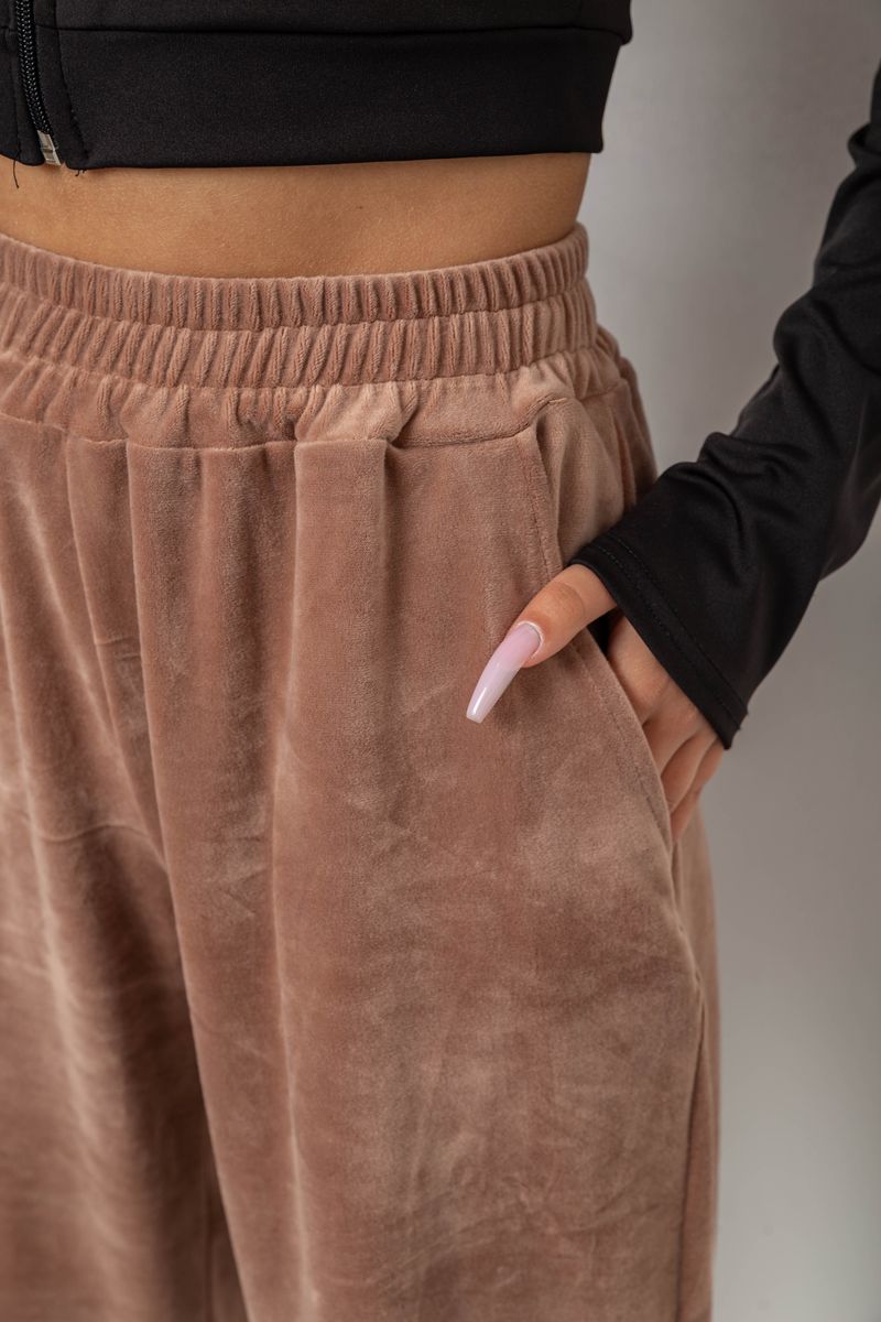 Спортивні штани жіночі велюрові, колір бежевий, 238R58646