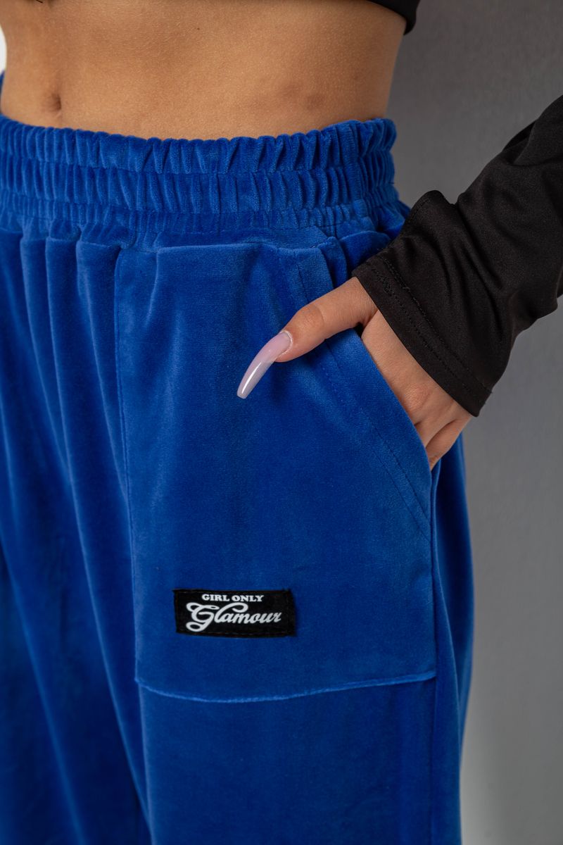 Спортивні штани жіночі велюрові, колір електрик, 238R58647-2