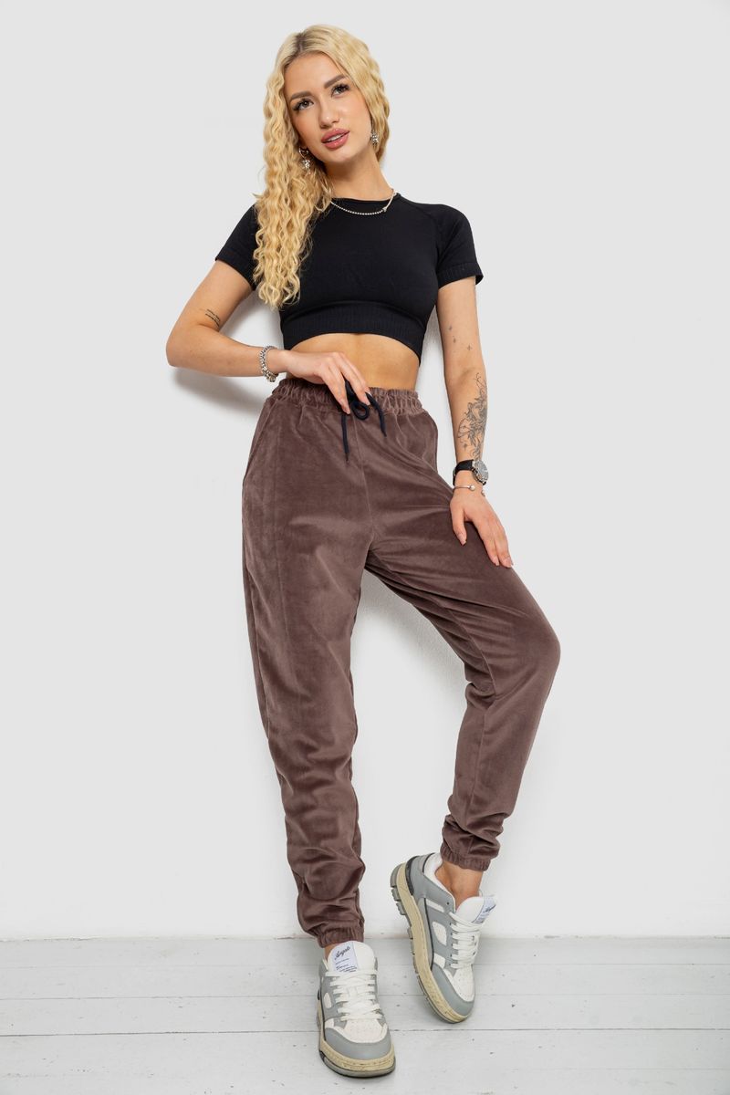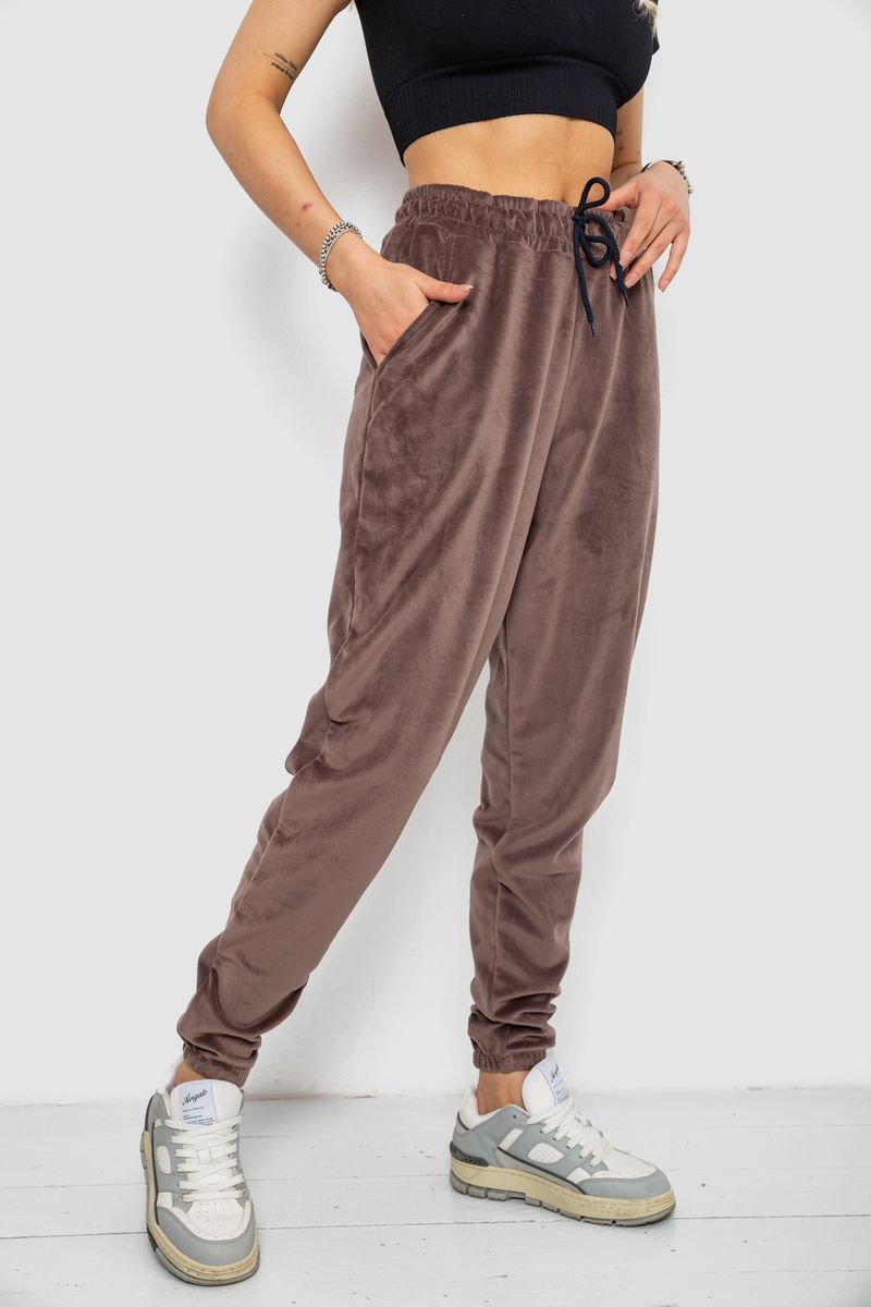 Спортивні штани жіночі велюрові, колір мокко, 238R58646
