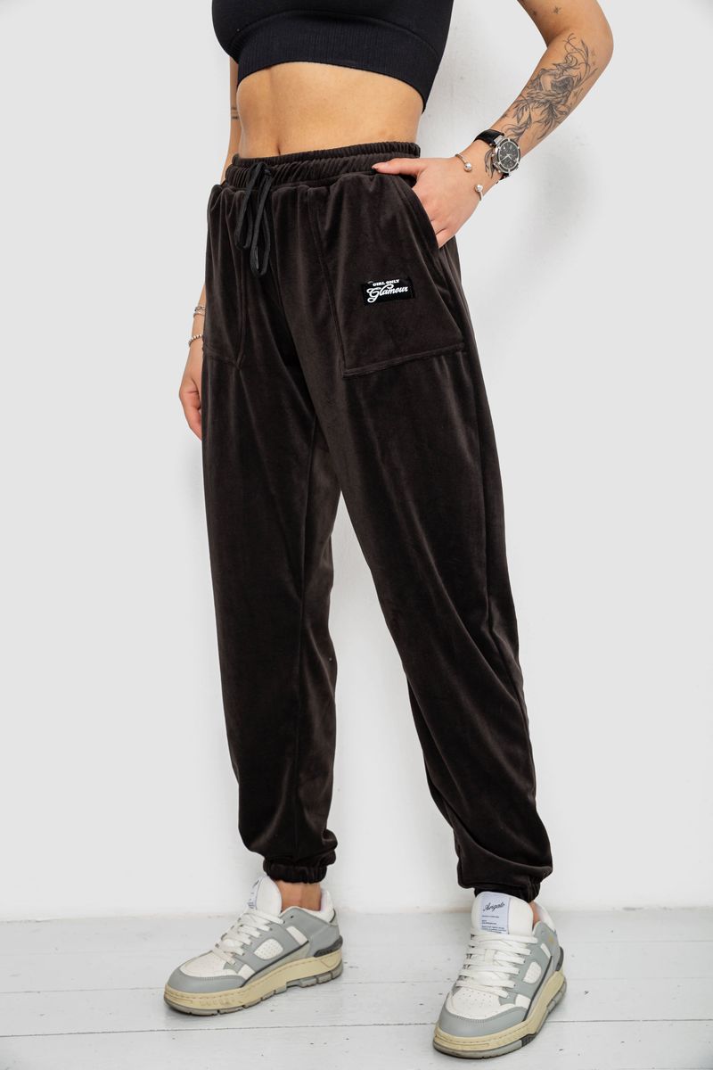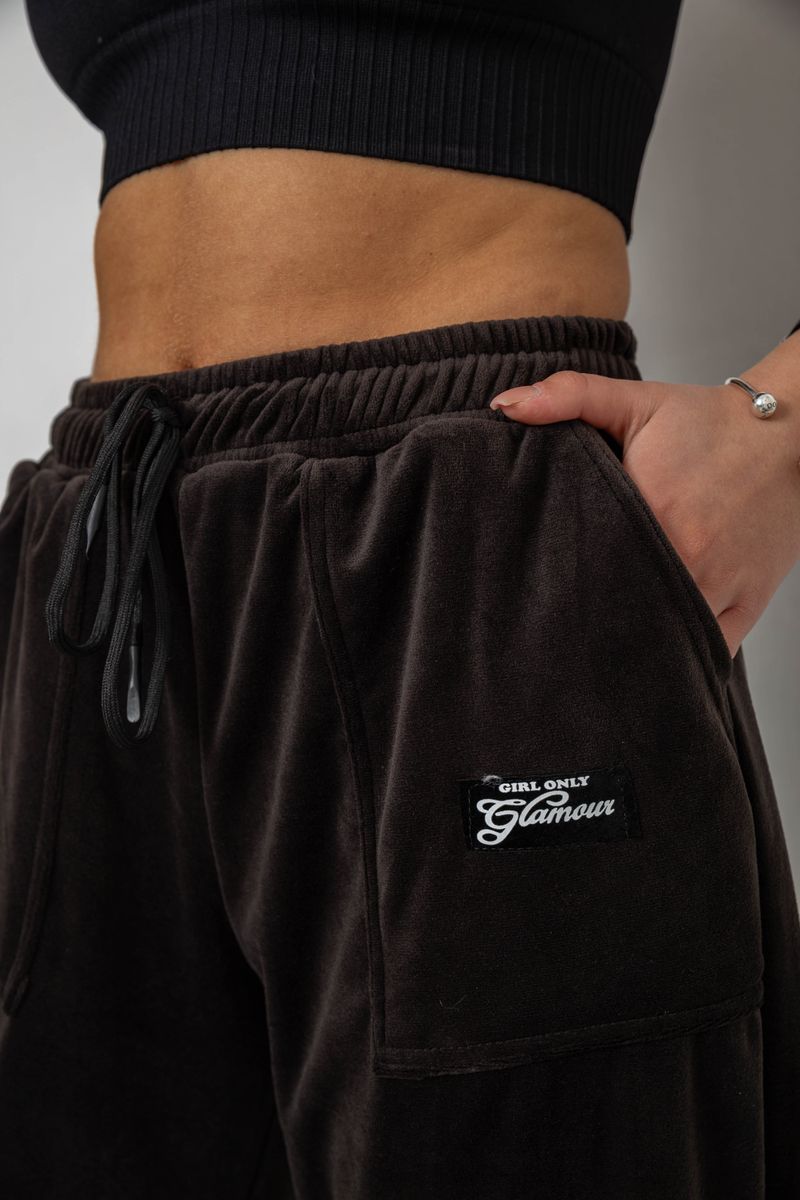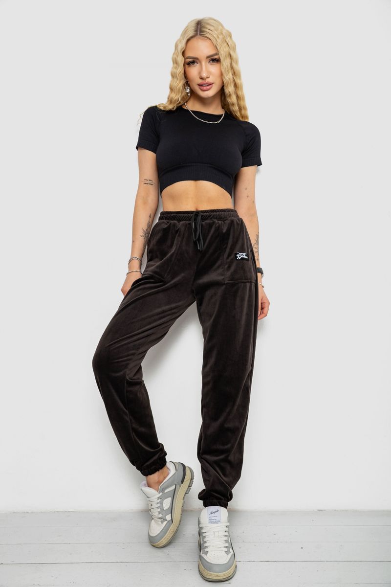 Спортивні штани жіночі велюрові на флісі, колір чорний, 238R58647-1