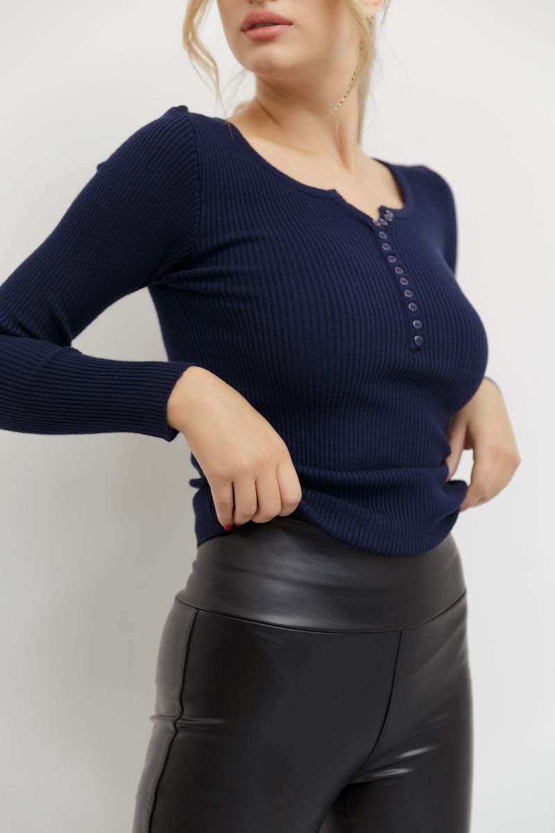 Кофта жіноча базова в рубчик, колір темно-синій, 204R002