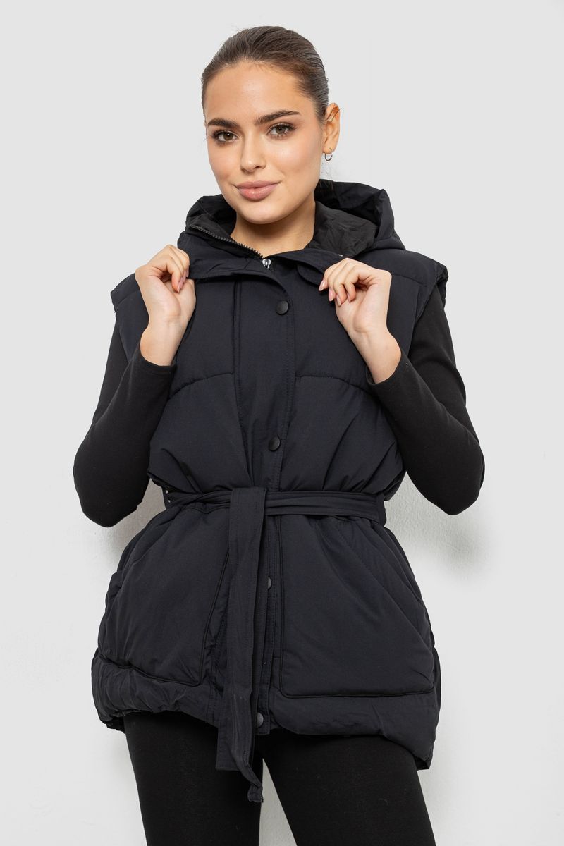 Жилет жіночий з капюшоном, колір чорний, 207R2016