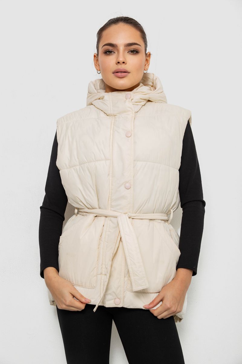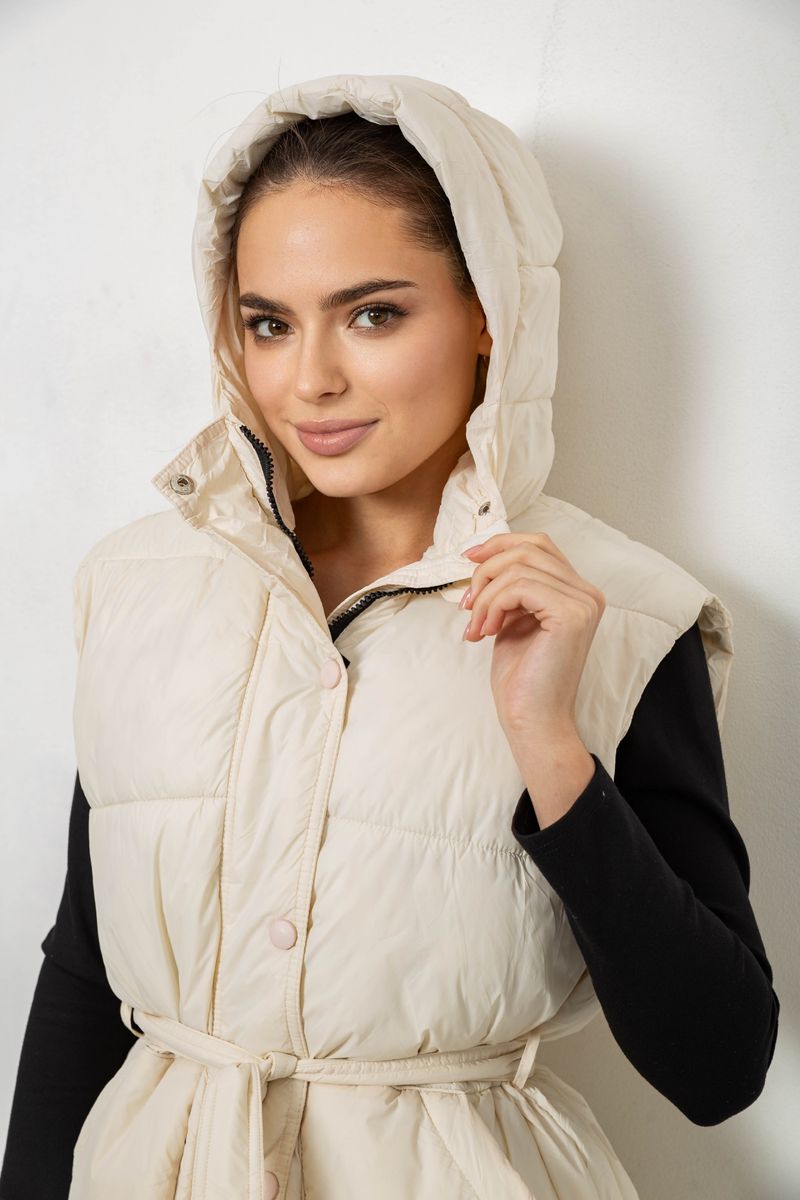 Жилет жіночий з капюшоном, колір світло-бежевий, 207R2016