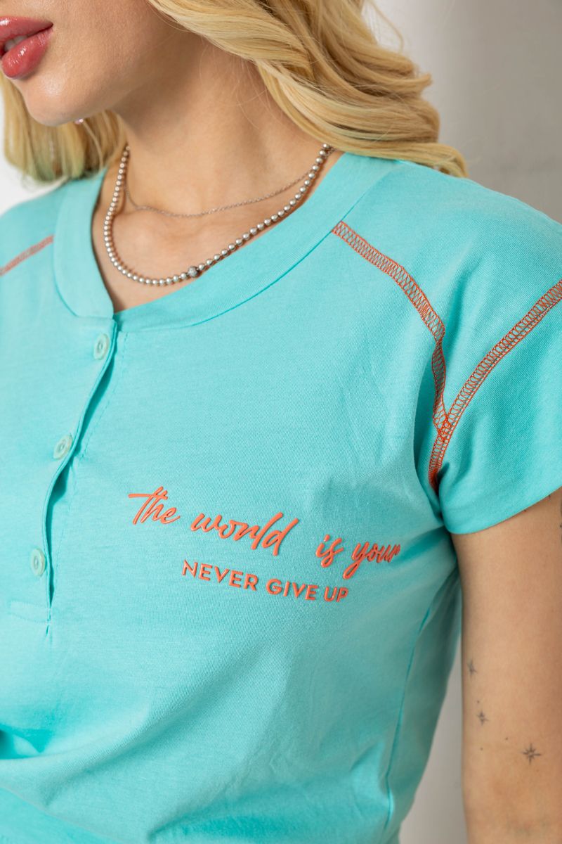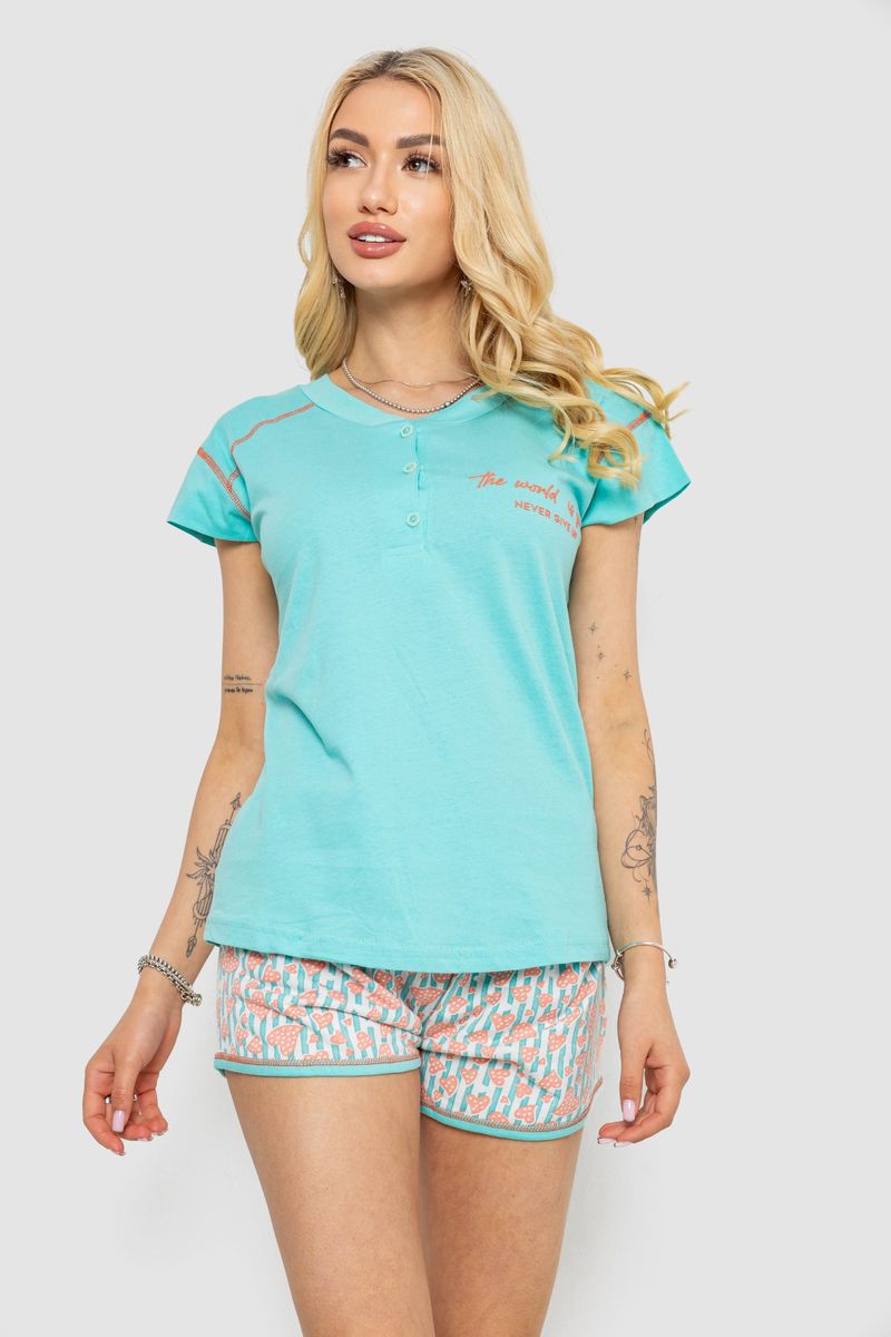 Піжама жіноча з принтом, колір бірюзовий, 243R0004-P6