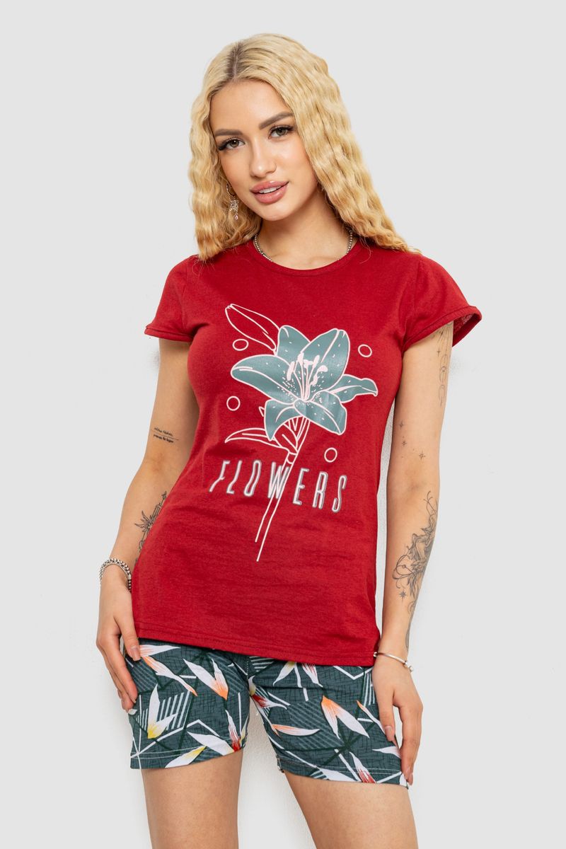 Піжама жіноча з принтом, колір бордово-синій, 243R3054