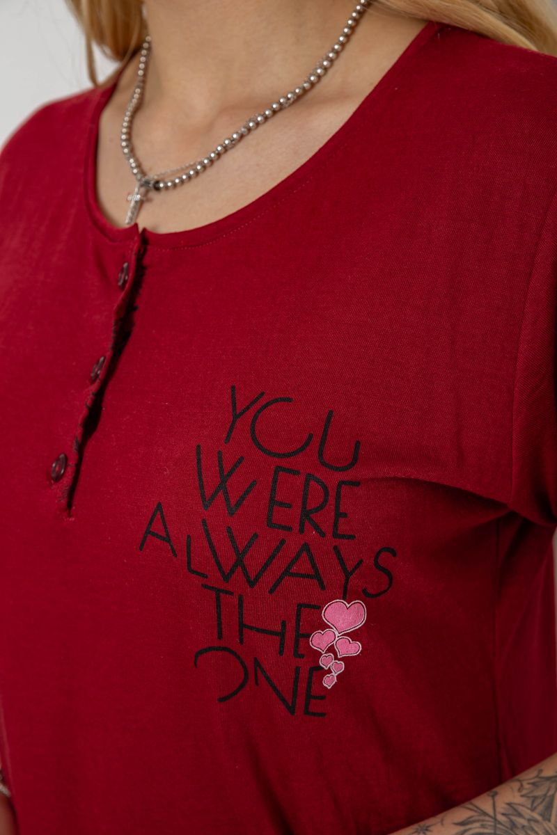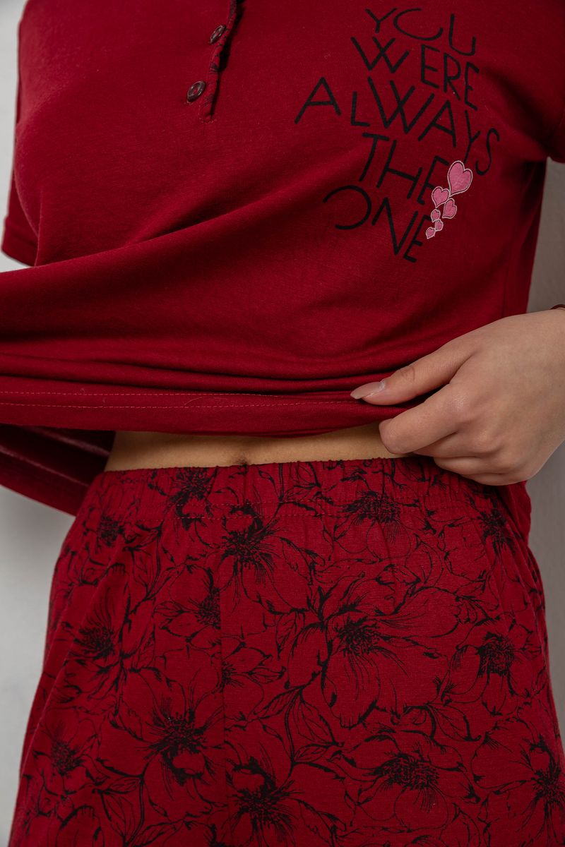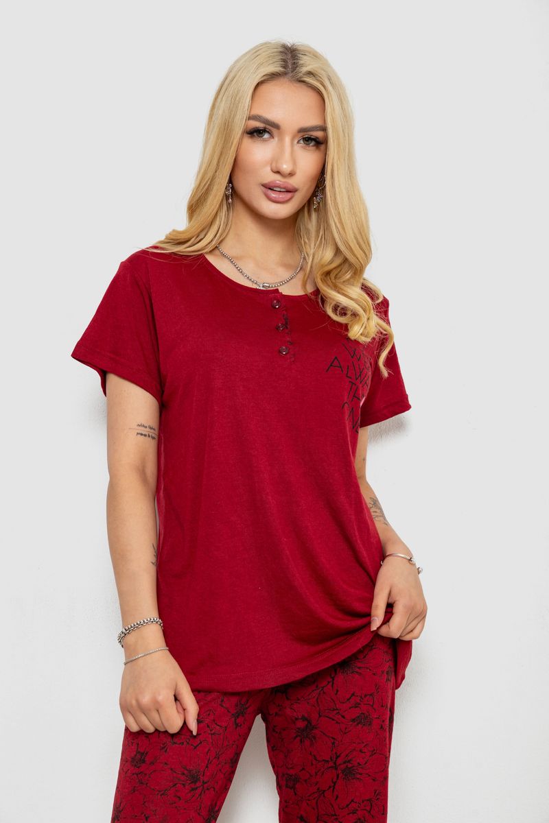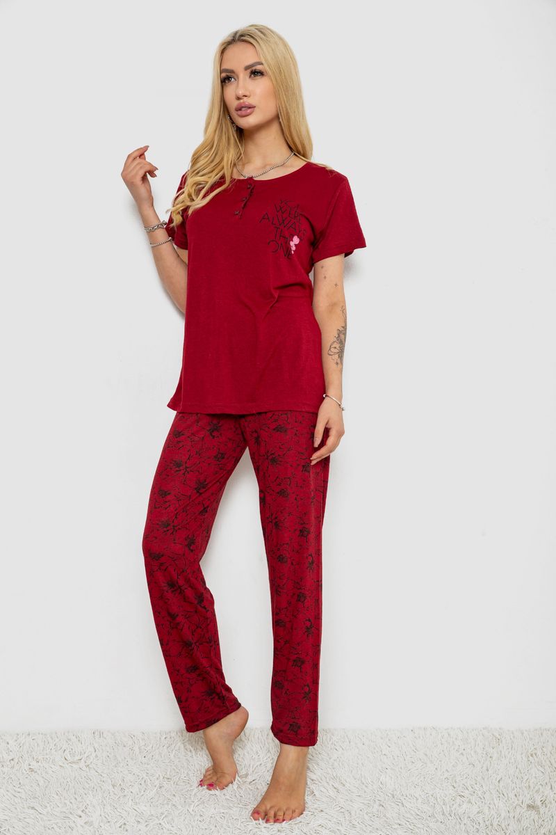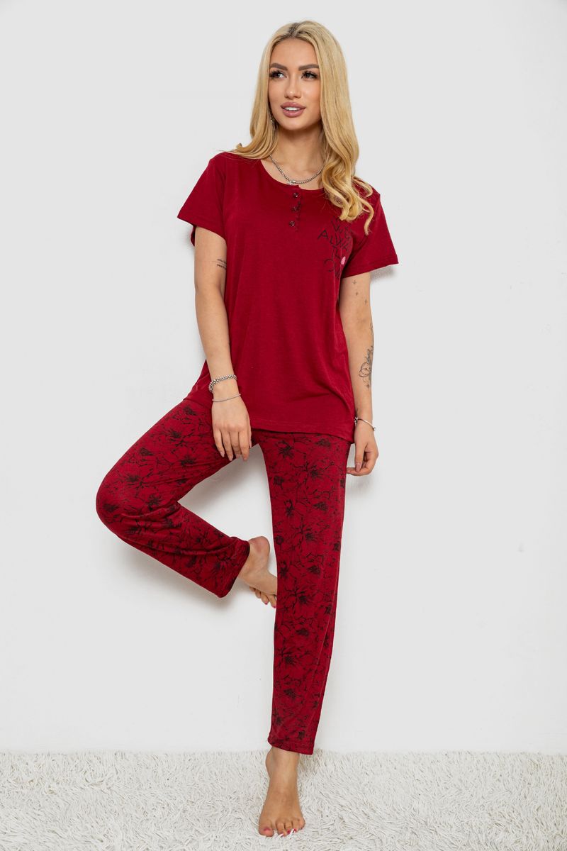 Піжама жіноча з принтом, колір бордовий, 243R10202