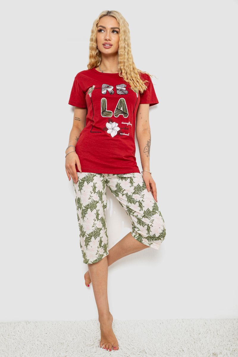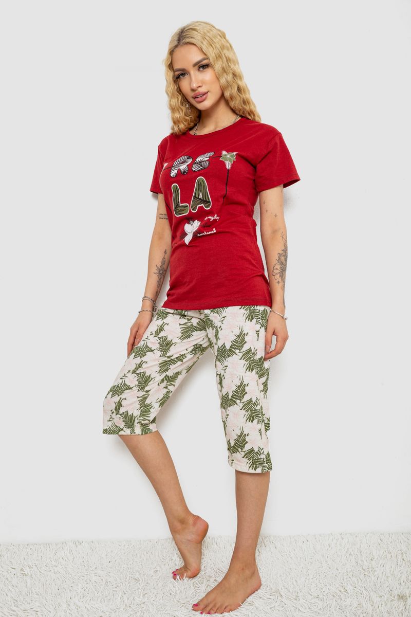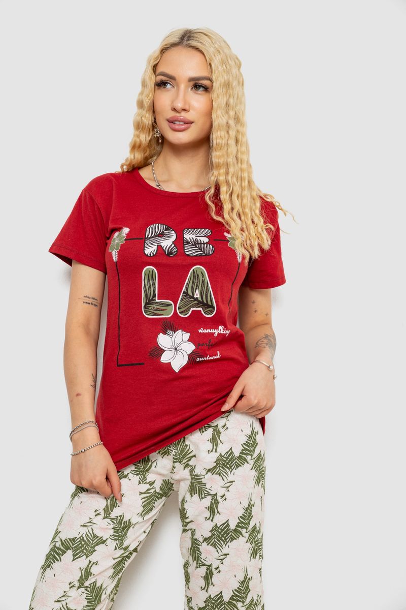 Піжама жіноча з принтом, колір бордовий, 243R3755