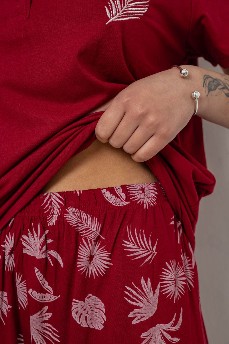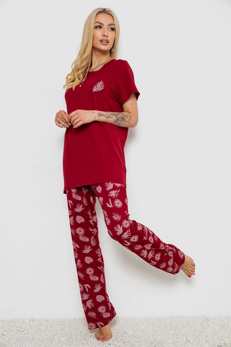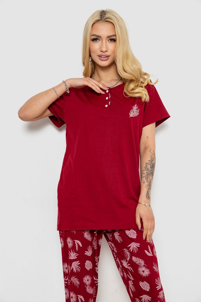 Піжама жіноча з принтом, колір бордовий, 243R7020
