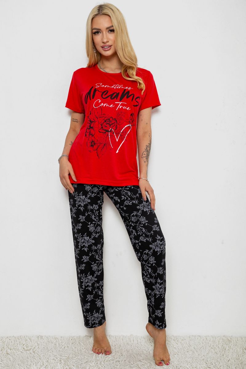 Піжама жіноча з принтом, колір червоний, 243R10317