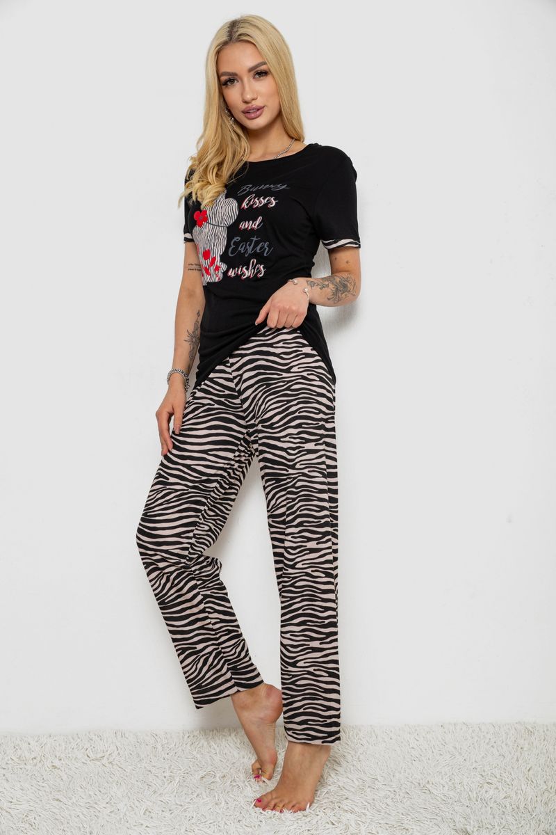 Піжама жіноча з принтом, колір чорний, 243R2032-E
