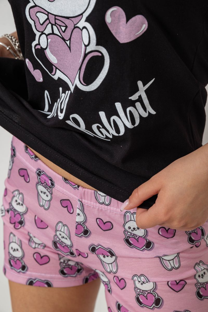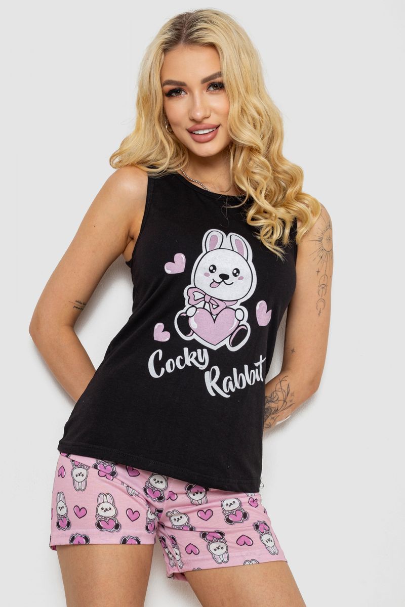 Піжама жіноча з принтом, колір чорний, 243R24498