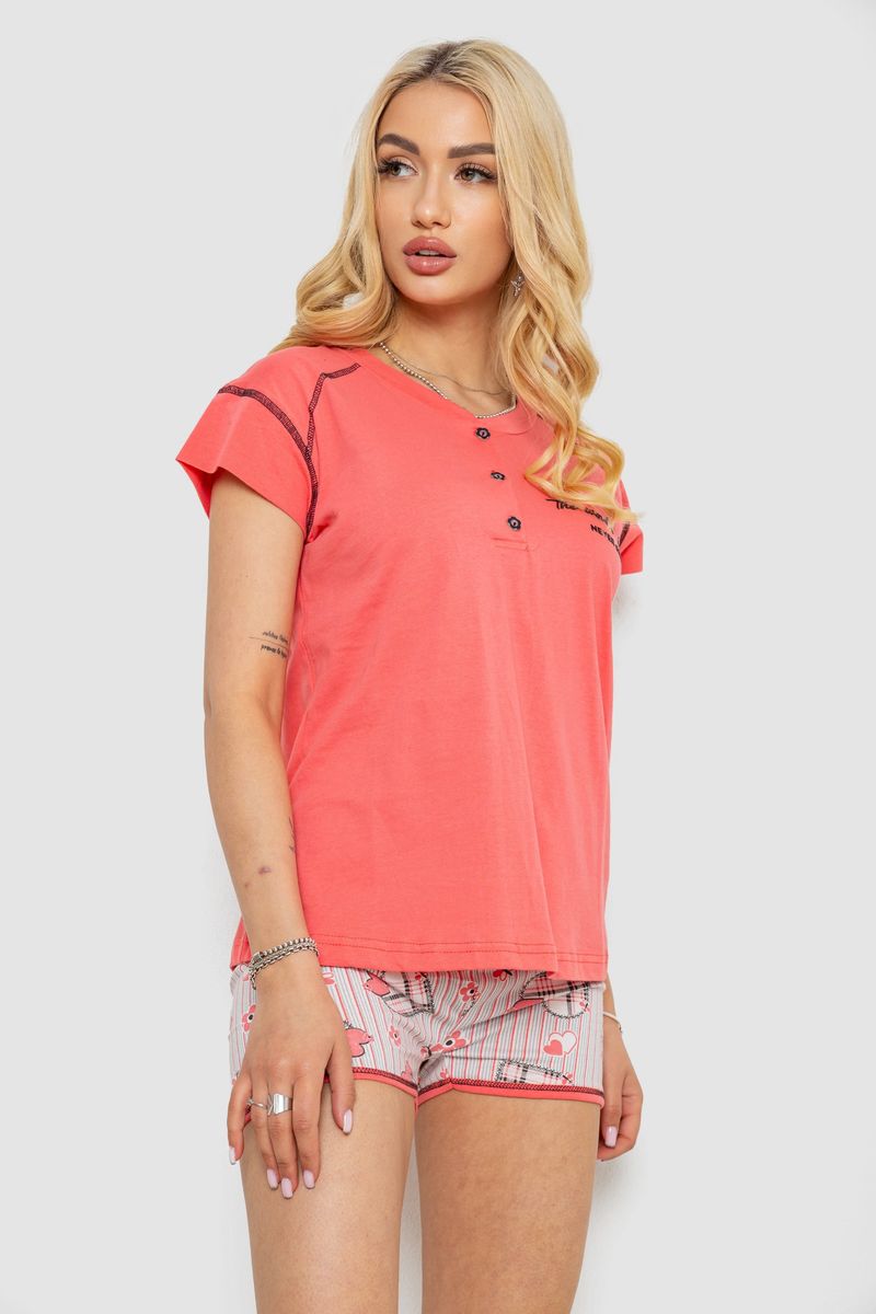 Піжама жіноча з принтом, колір кораловий, 243R0004-P14