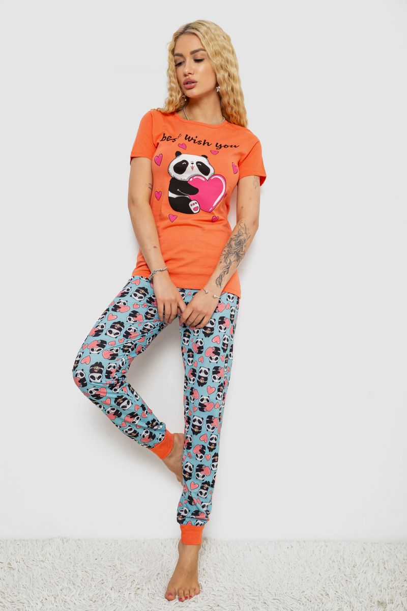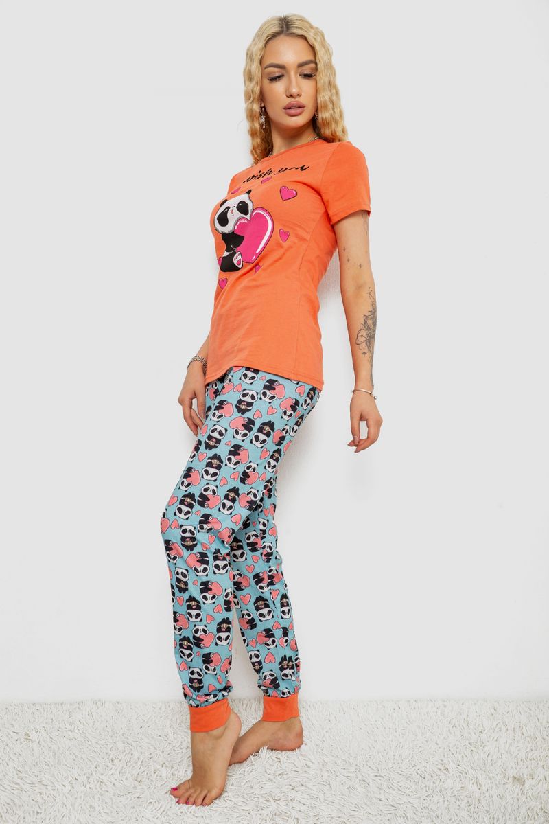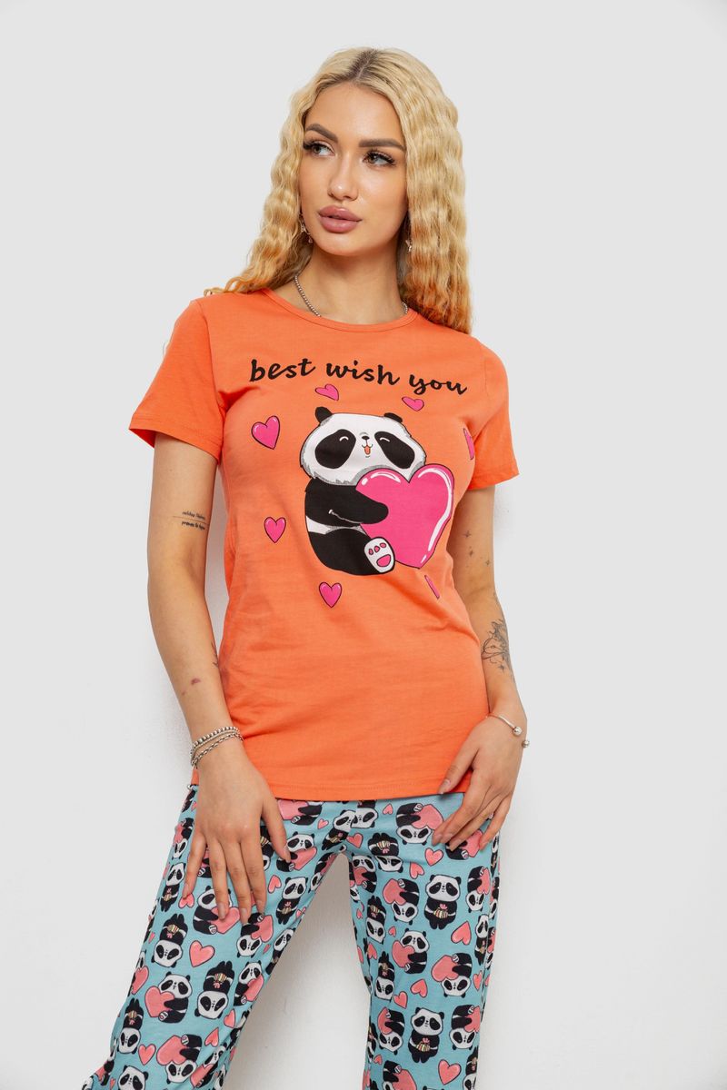 Піжама жіноча з принтом, колір персиково-блакитний, 243R15913
