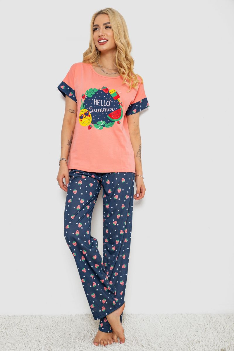 Піжама жіноча з принтом, колір персиковий, 243R15412