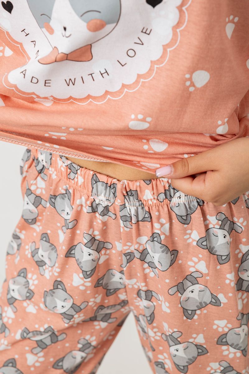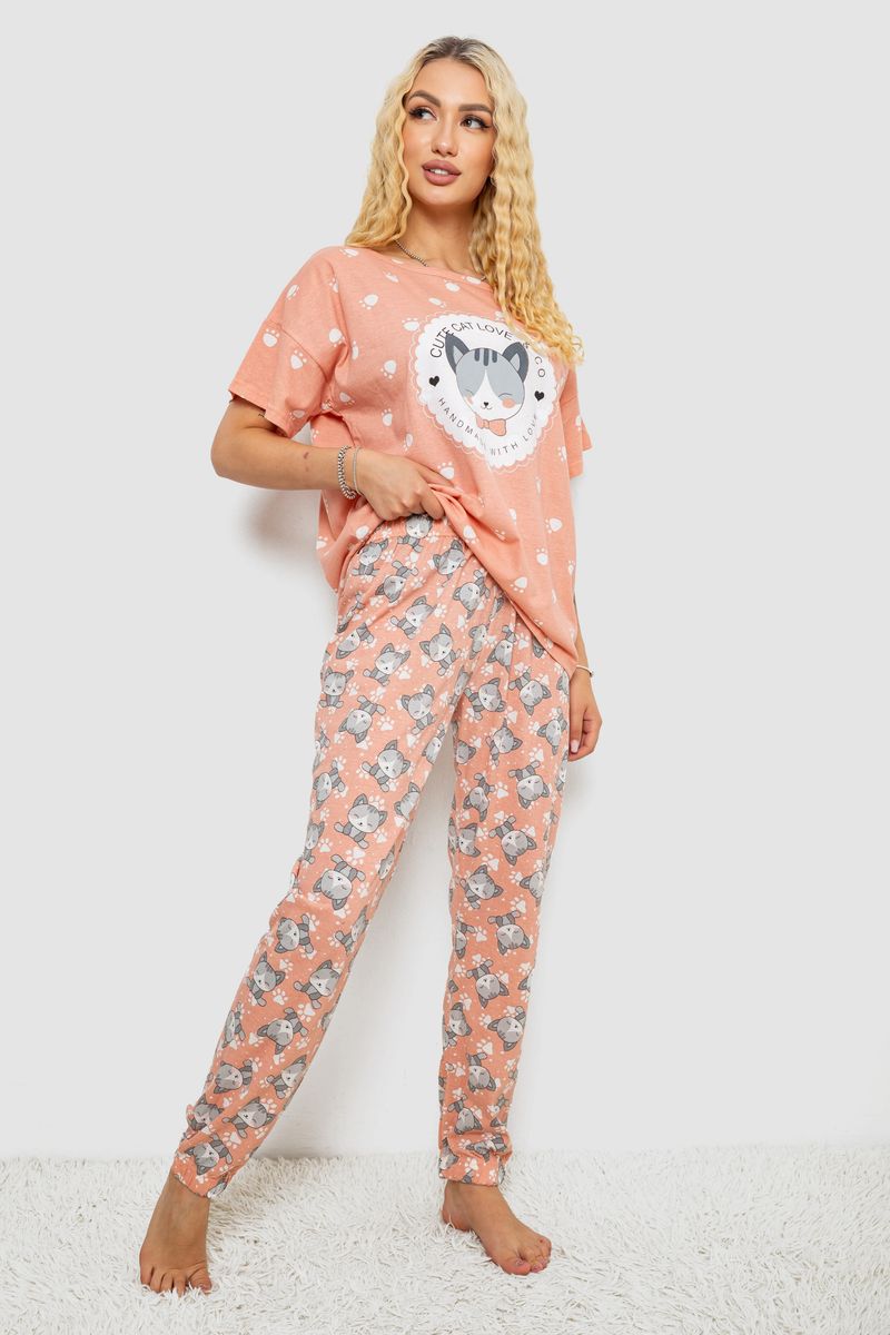 Піжама жіноча з принтом, колір персиковий, 243R15448