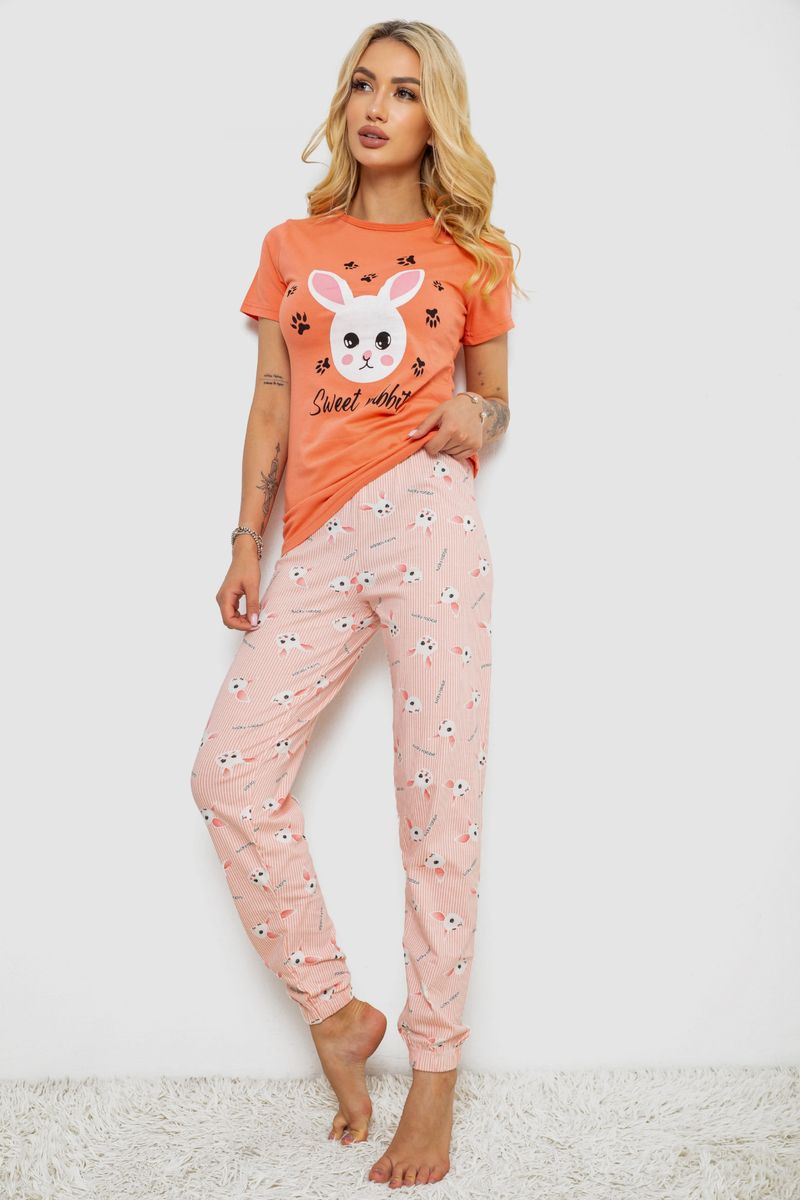 Піжама жіноча з принтом, колір помаранчевий, 243R15846