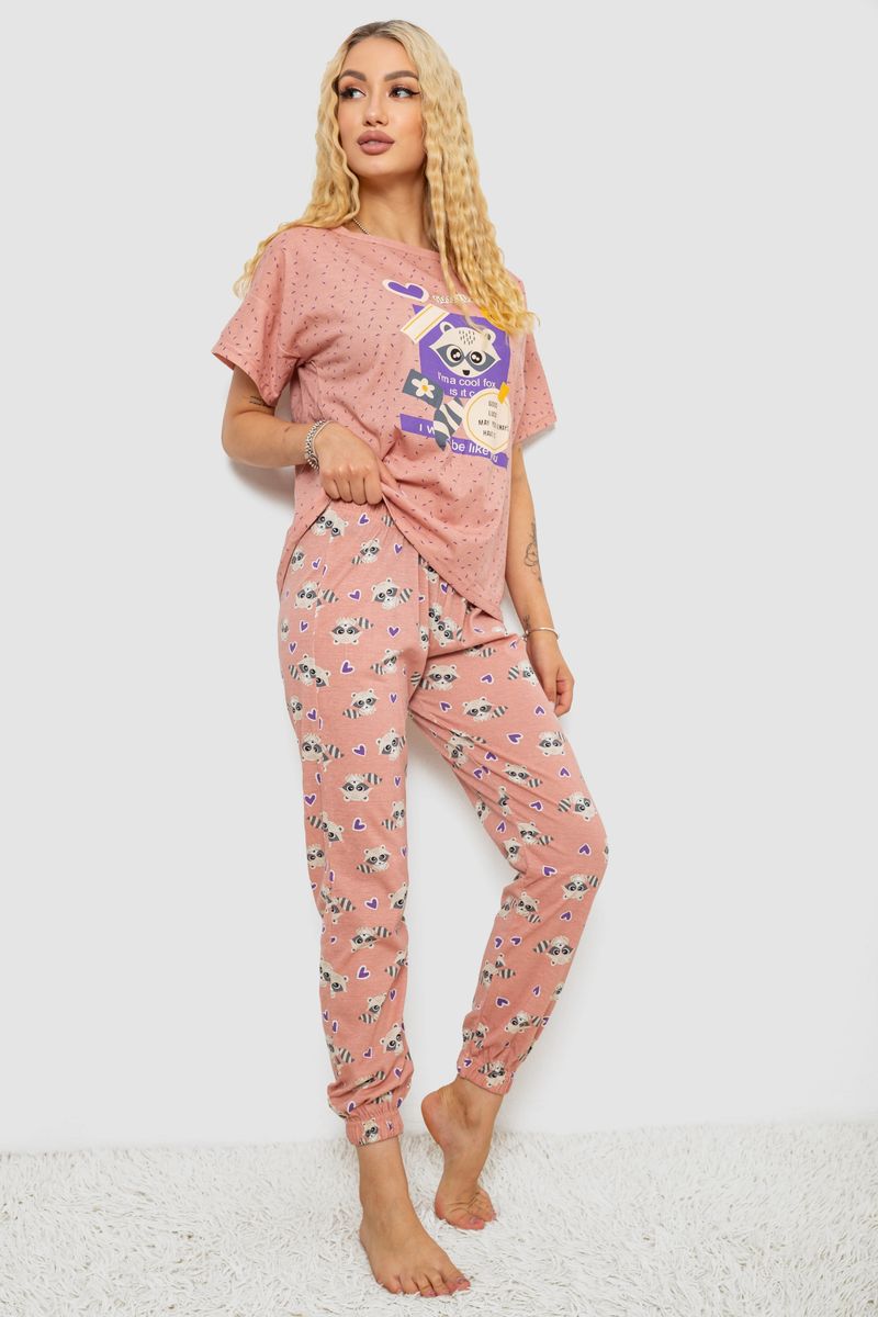 Піжама жіноча з принтом, колір пудровий, 243R15249