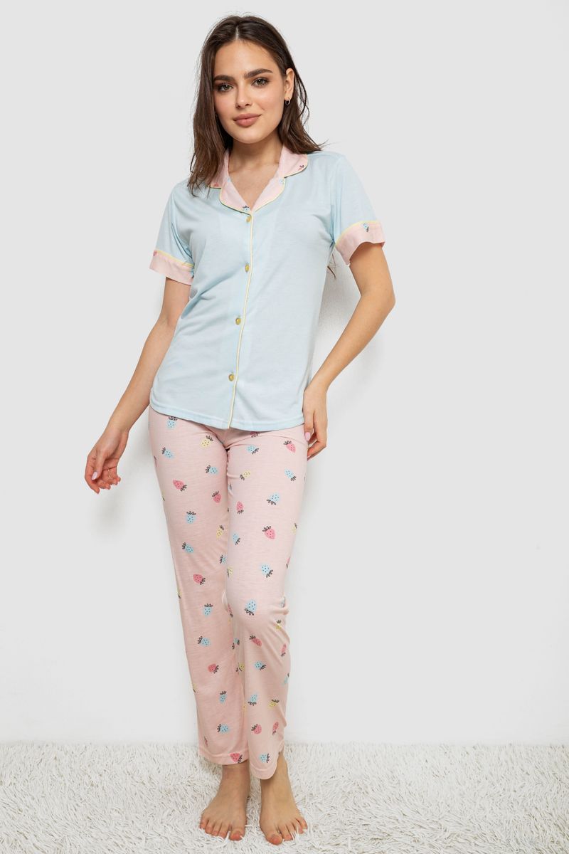 Піжама жіноча з принтом, колір пудровий, 243R15406