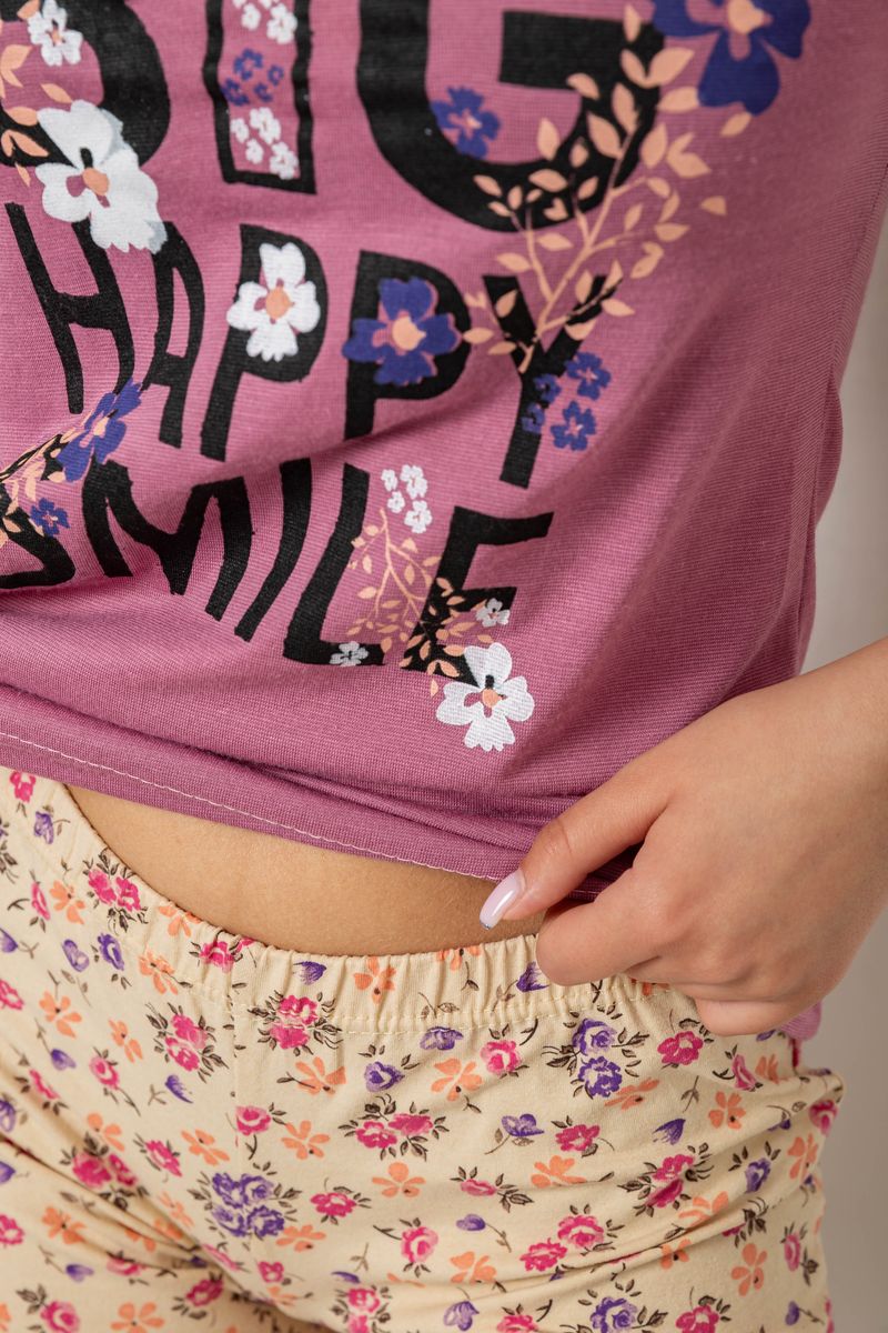 Піжама жіноча з принтом, колір пудровий, 243R24481