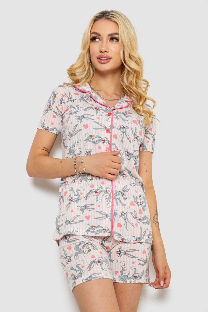 Піжама жіноча з принтом, колір пудровий, 243R3633