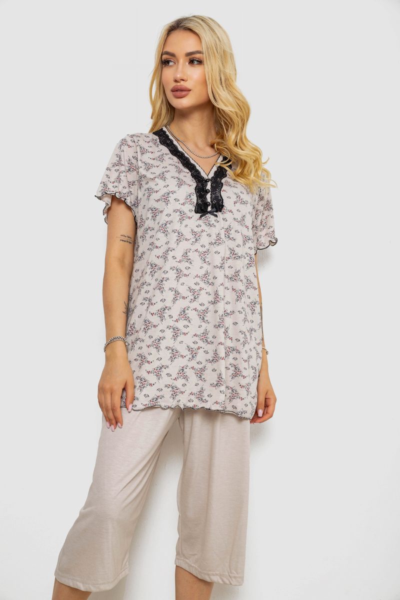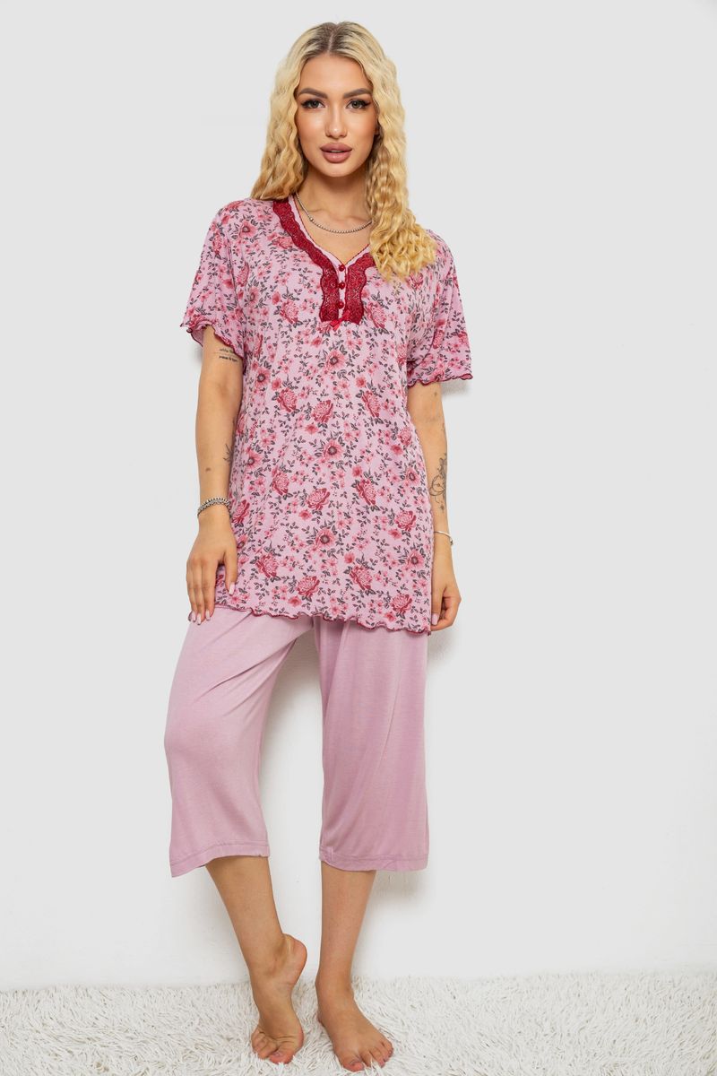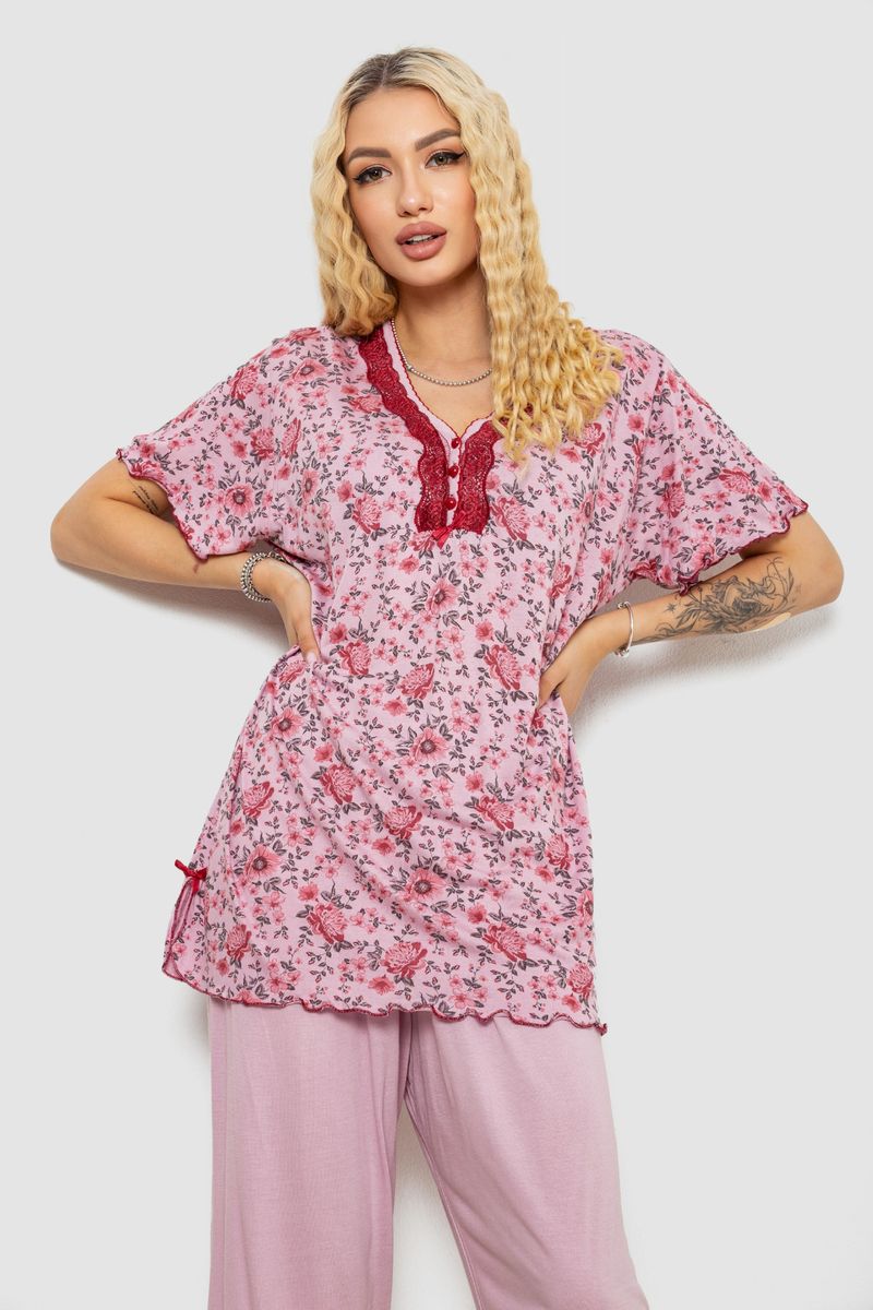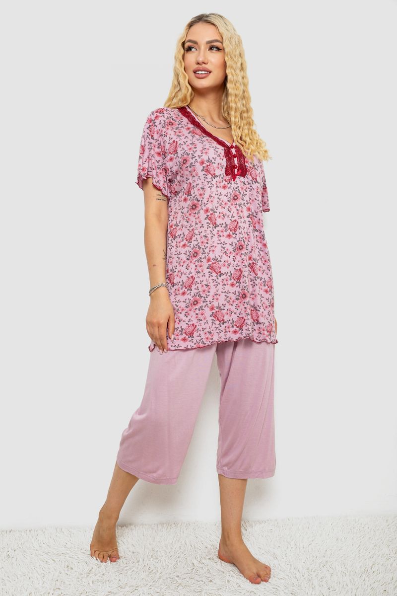 Піжама жіноча з принтом, колір пудровий, 243R6923