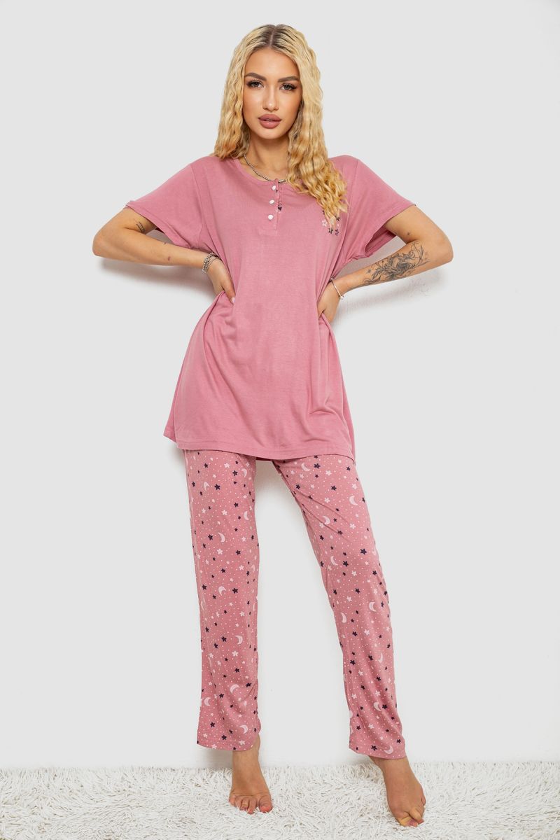 Піжама жіноча з принтом, колір пудровий, 243R7025