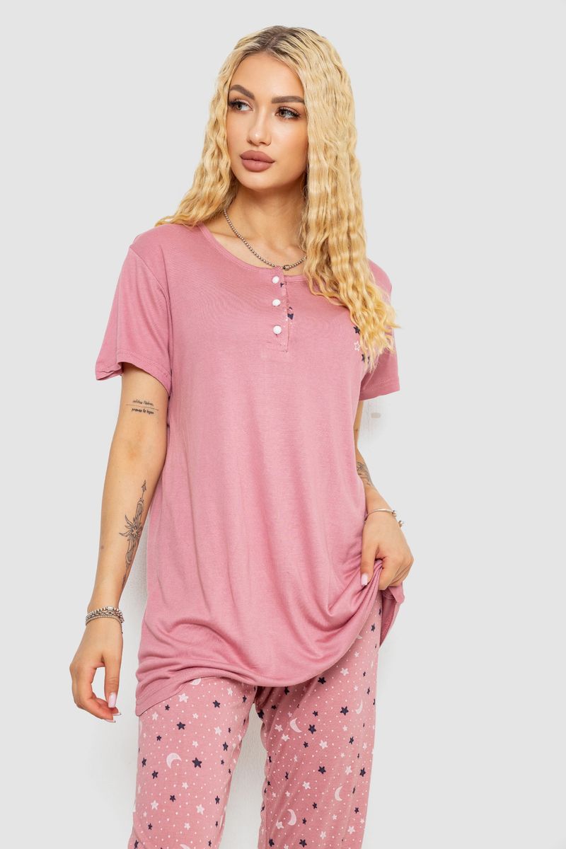 Піжама жіноча з принтом, колір пудровий, 243R7025-1