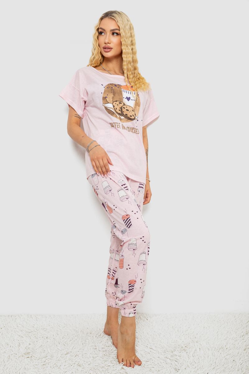 Піжама жіноча з принтом, колір рожевий, 243R15496