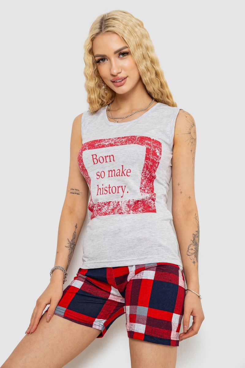 Піжама жіноча з принтом, колір сіро-червоний, 243R2467