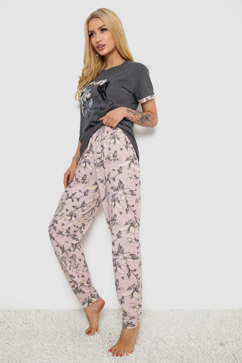 Піжама жіноча з принтом, колір сіро-пудровий, 243R9248