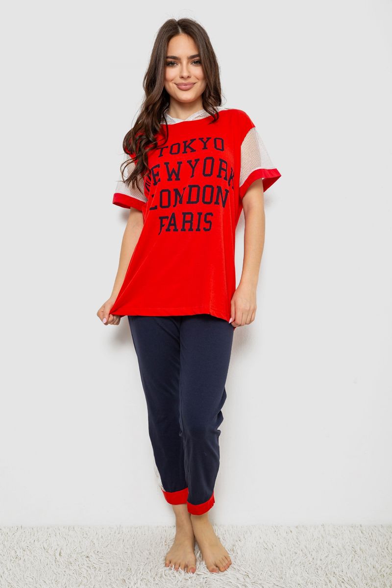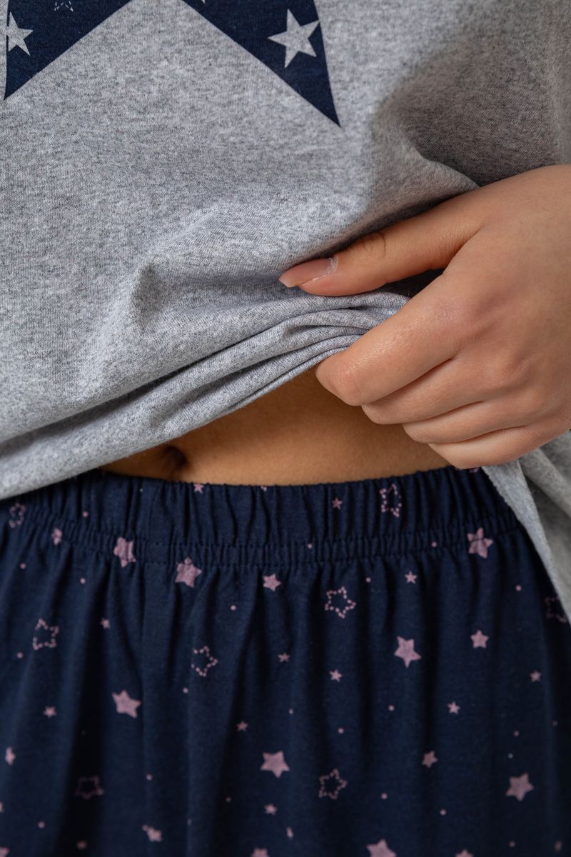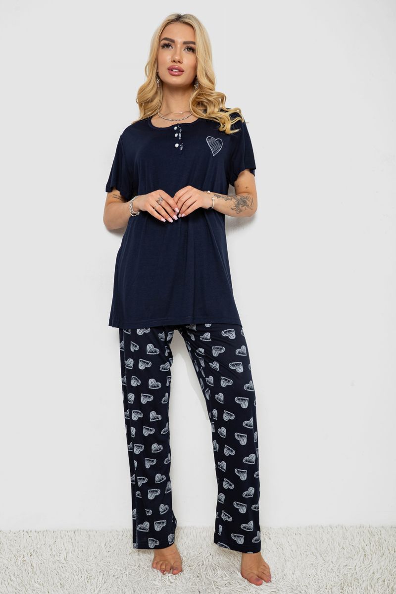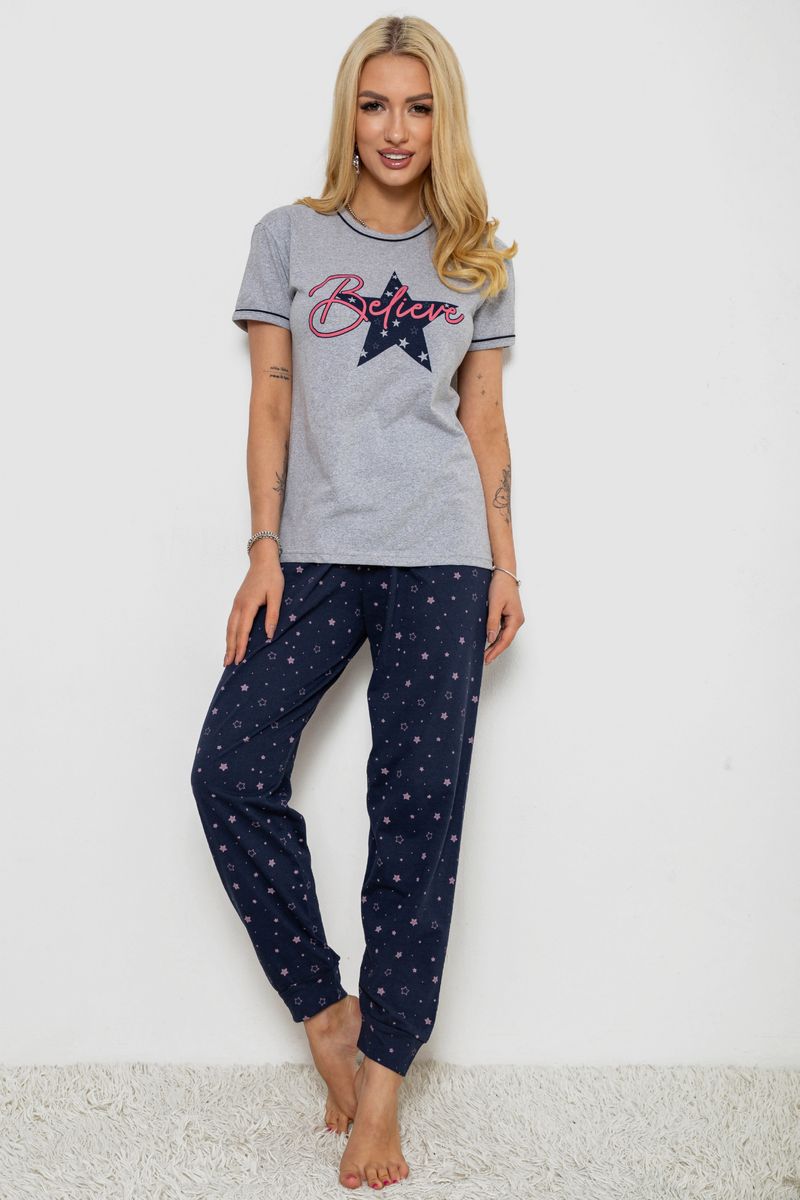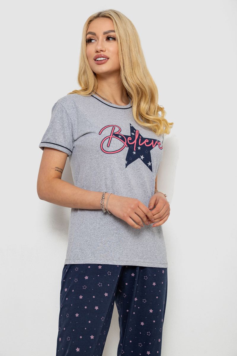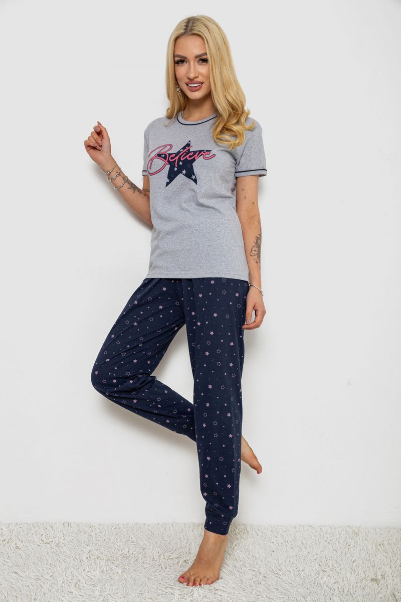 Піжама жіноча з принтом, колір сіро-синій, 243R9214
