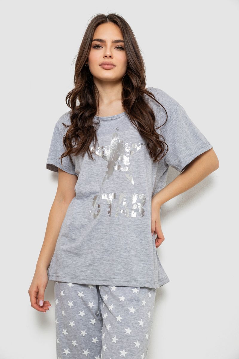 Піжама жіноча з принтом, колір сірий, 243R1602-011