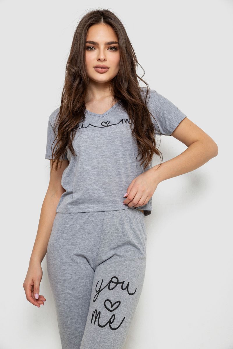 Піжама жіноча з принтом, колір сірий, 243RK-026