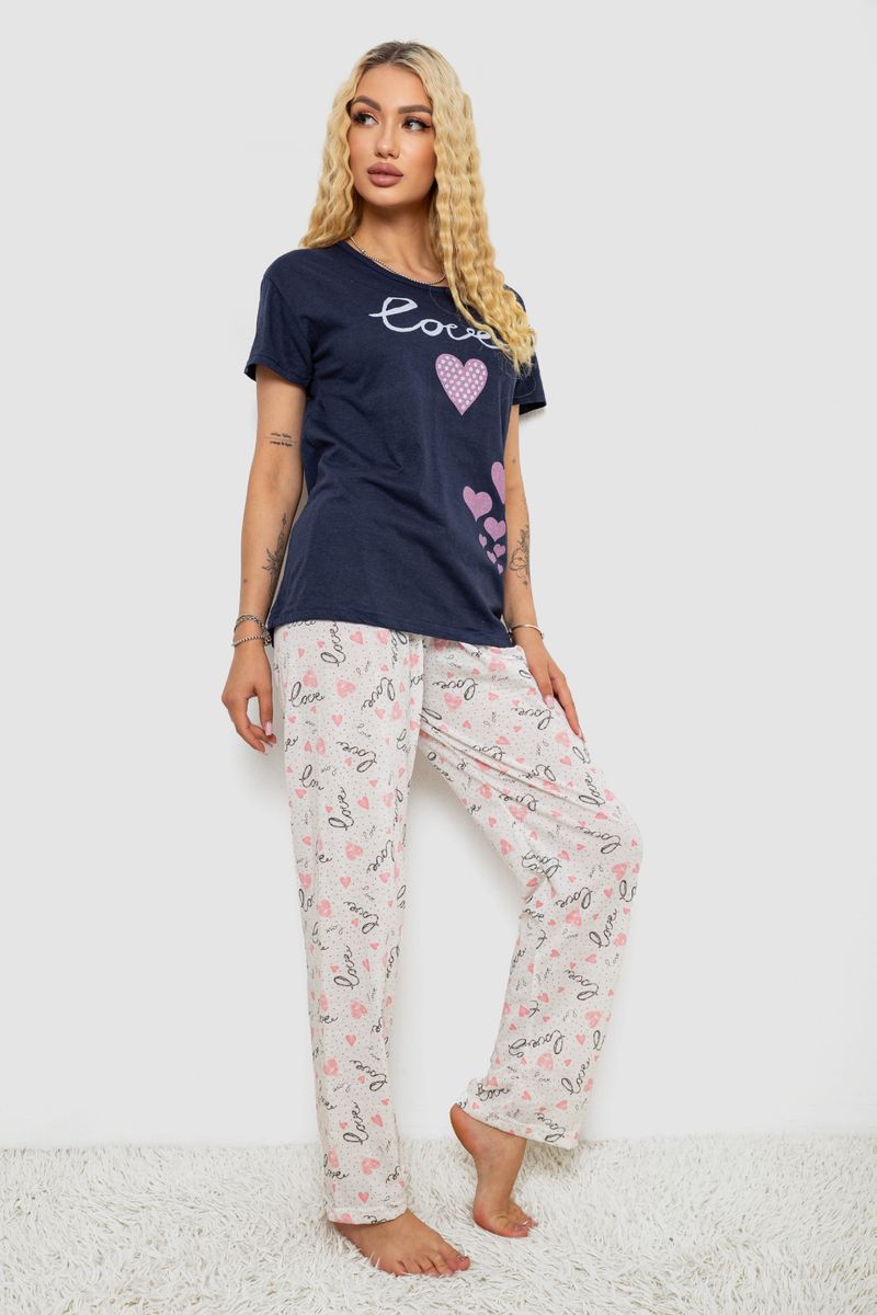 Піжама жіноча з принтом, колір синій, 243R6401