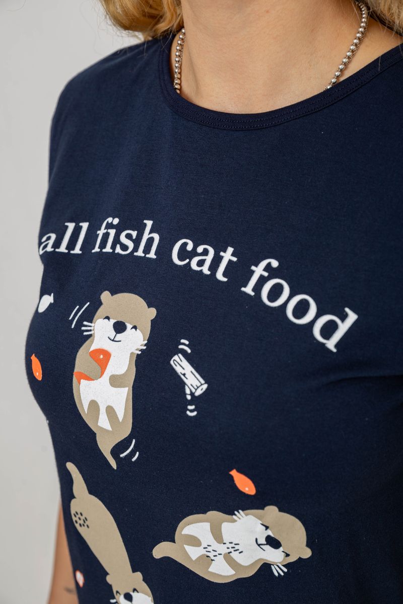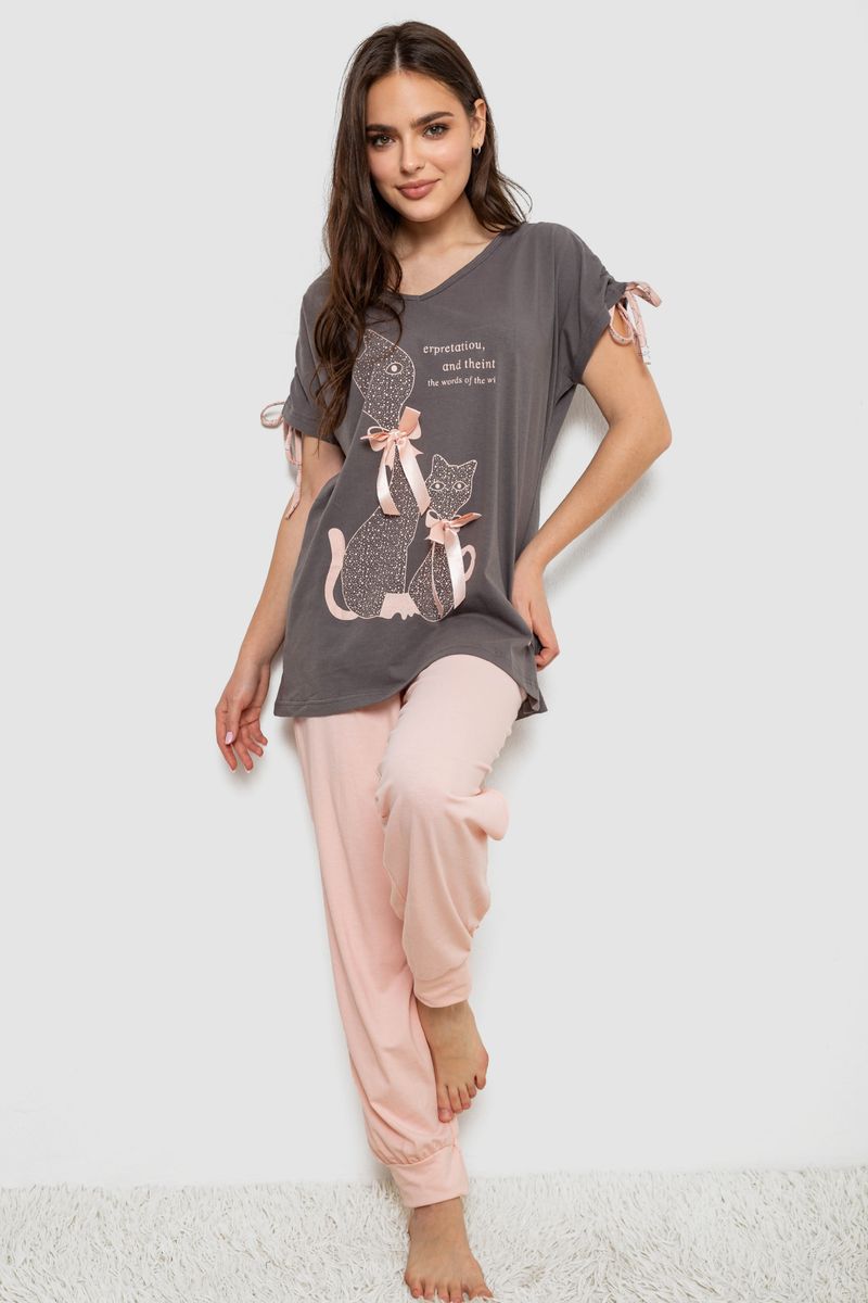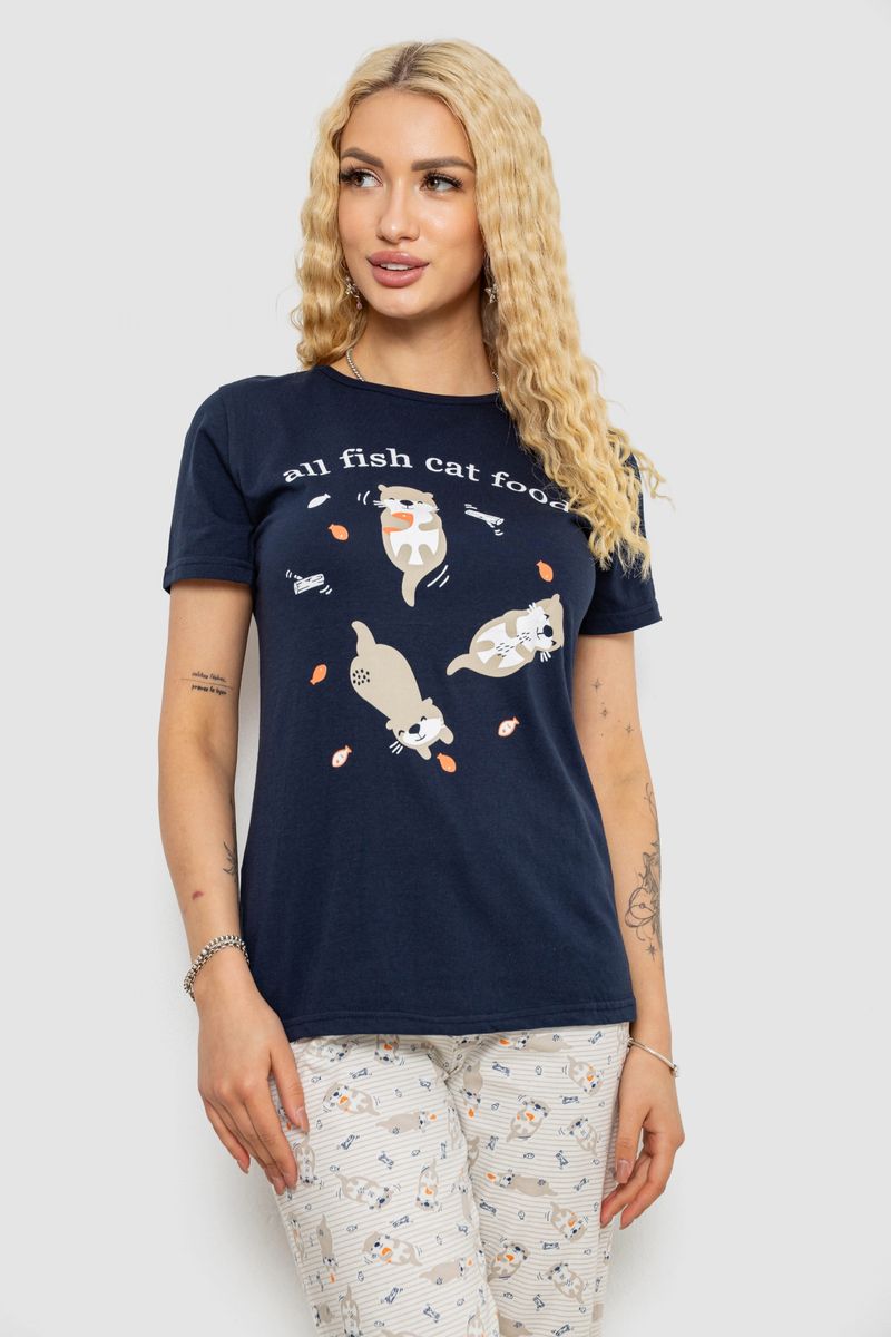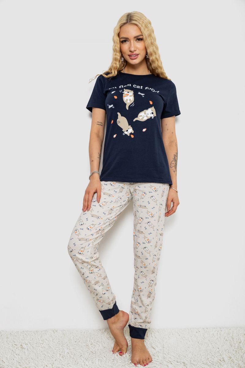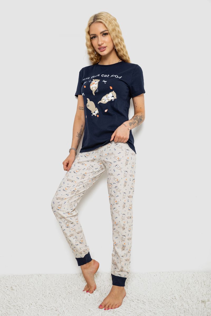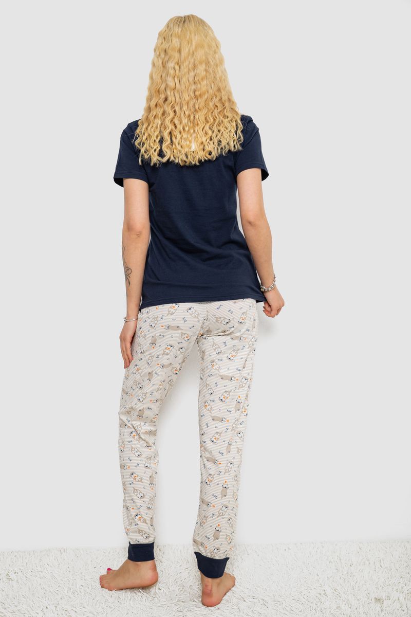 Піжама жіноча з принтом, колір синьо-молочний, 243R15896