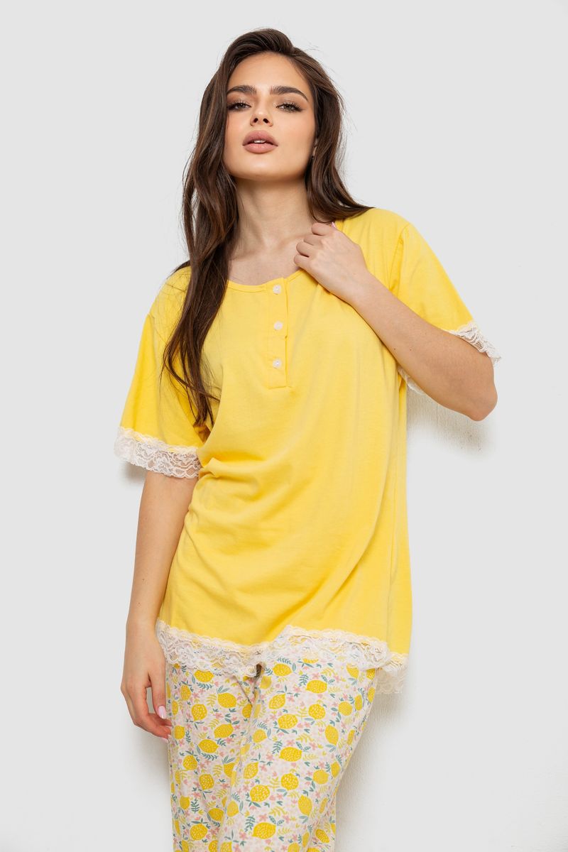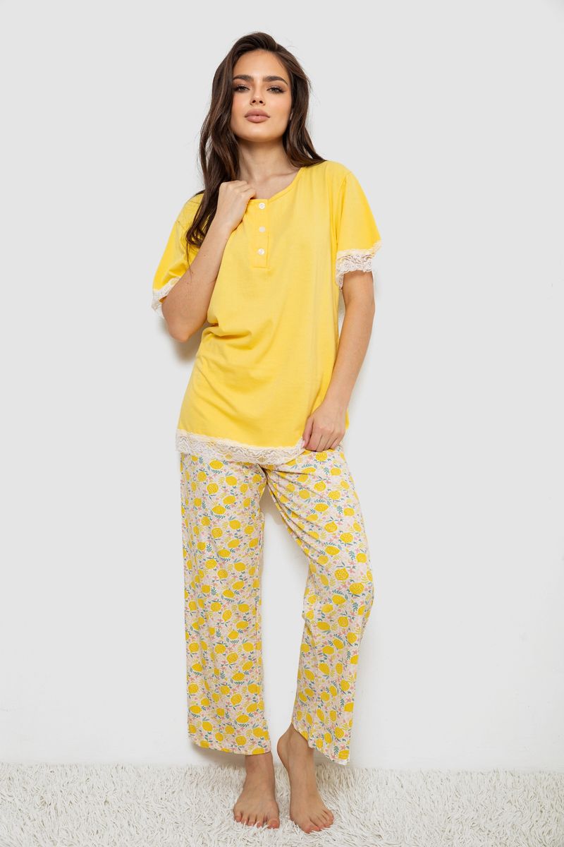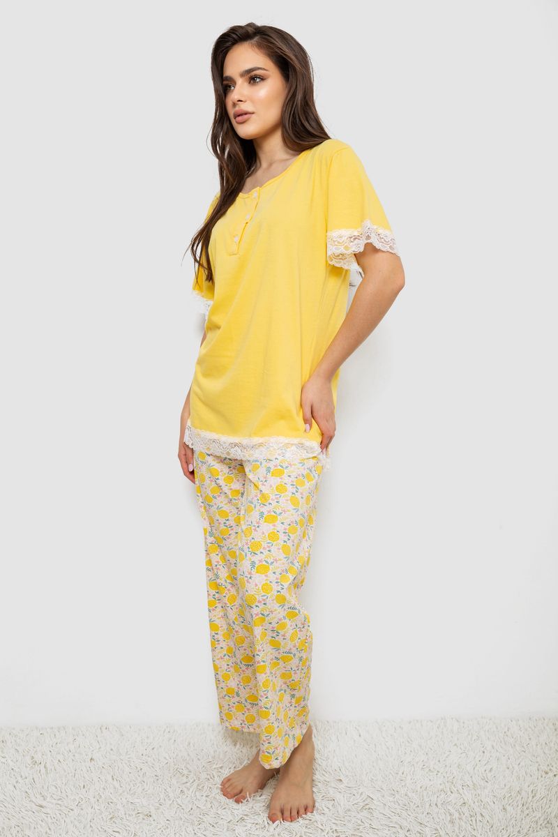 Піжама жіноча з принтом, колір жовтий, 243R903087