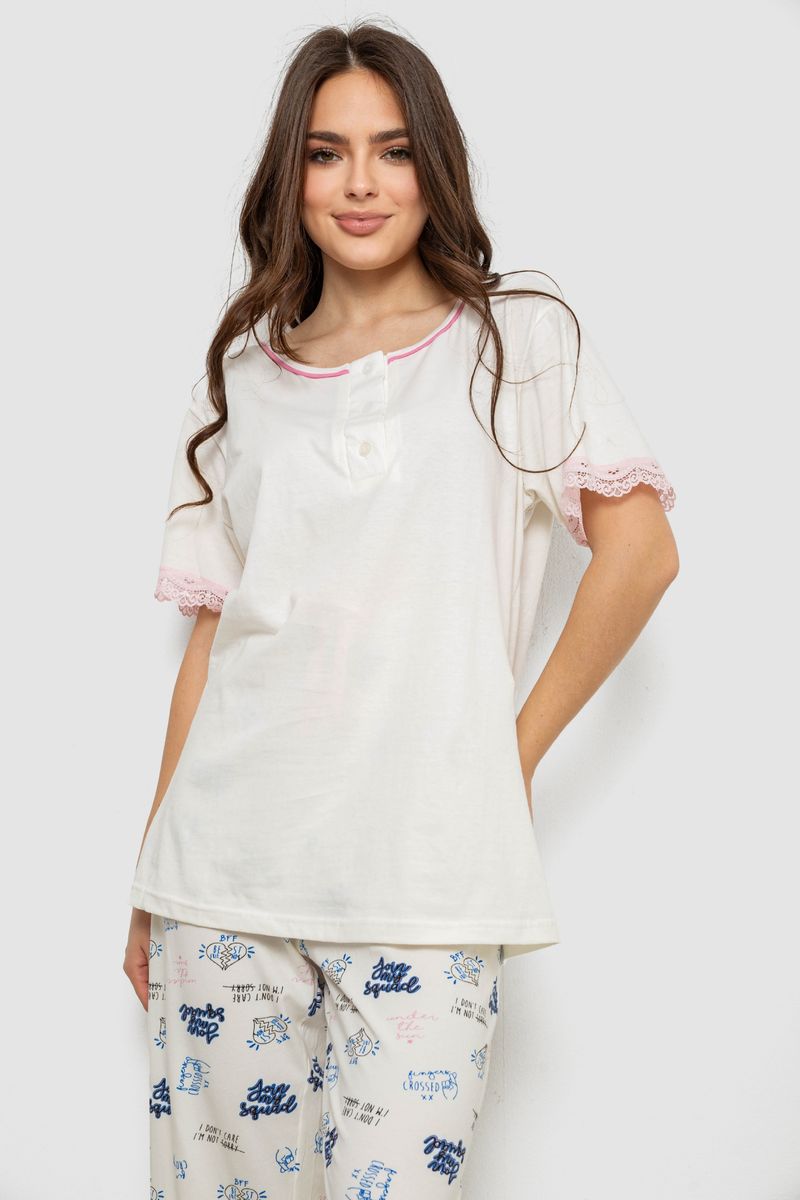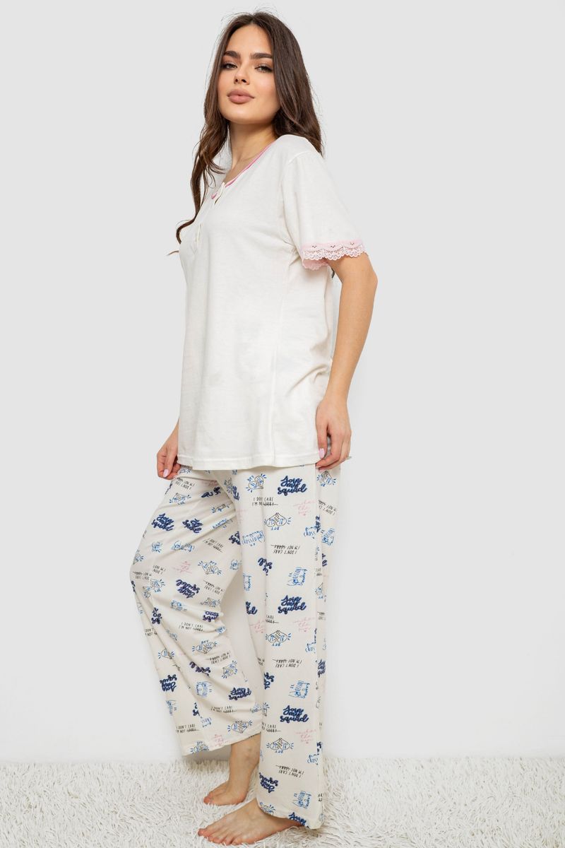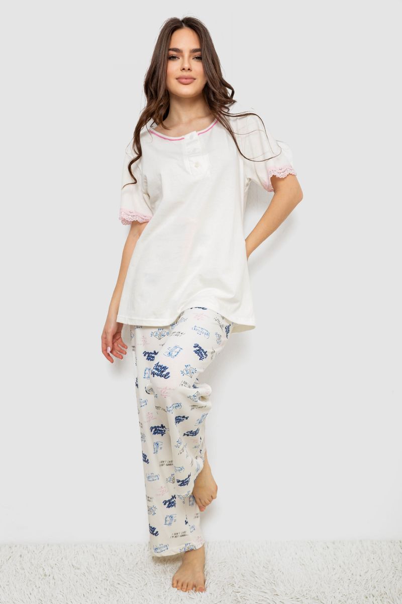Жіноча піжама з принтом, колір молочний, 243R903059