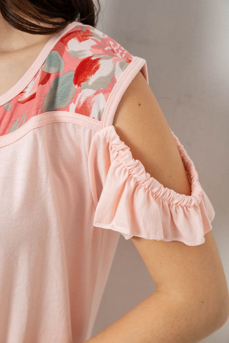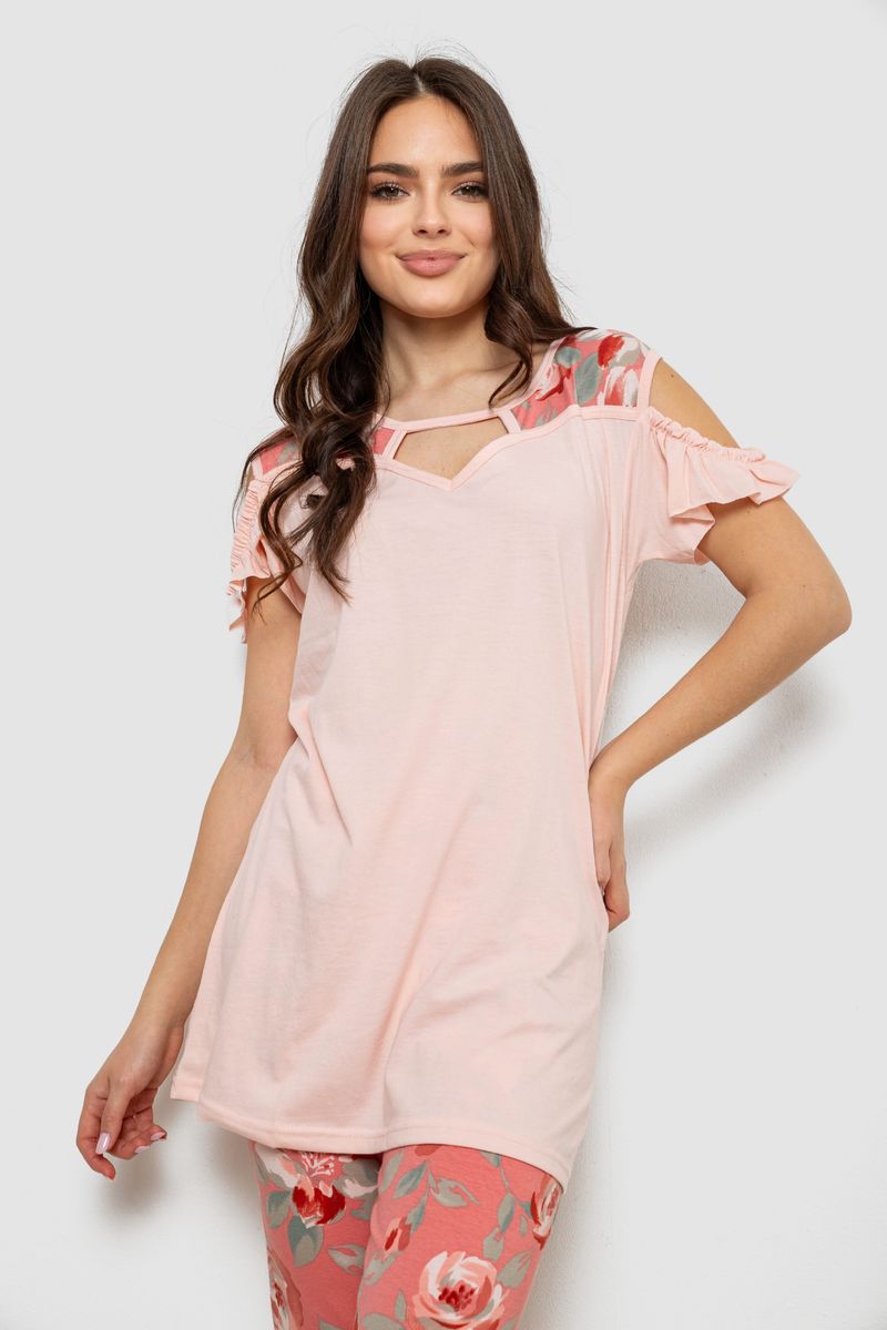 Жіноча піжама з принтом, колір персиковий, 243R1602-003