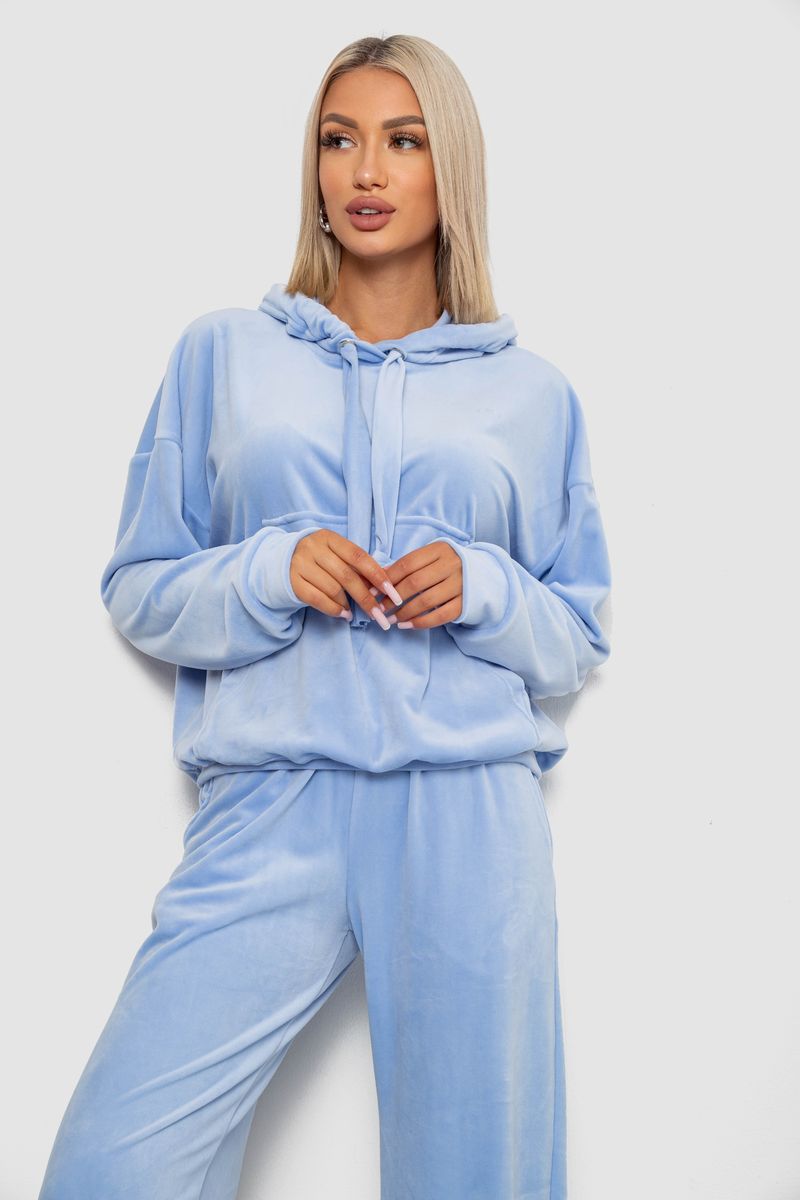 Спортивний костюм жіночий велюровий вільного крою, колір блакитний, 241R2001-20