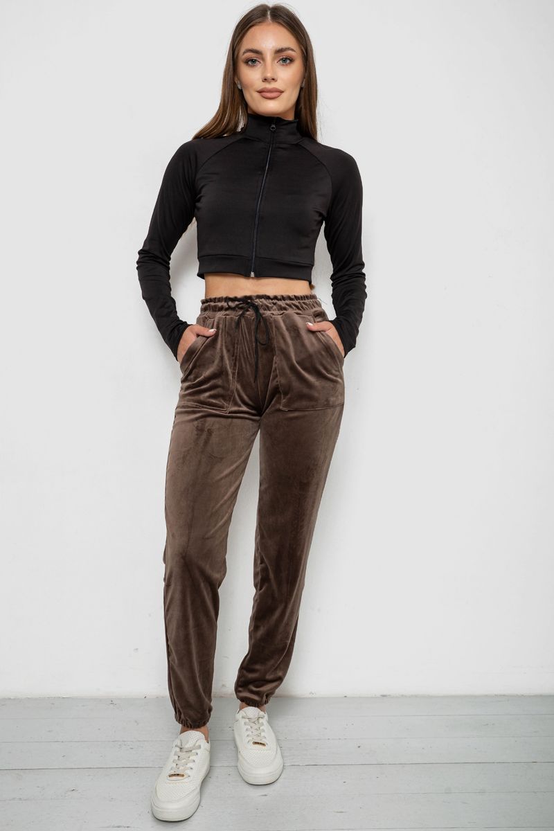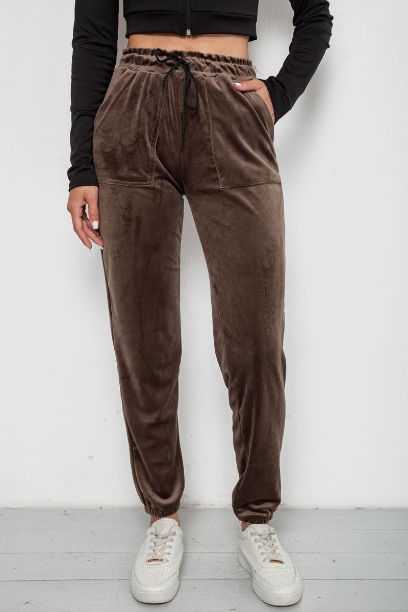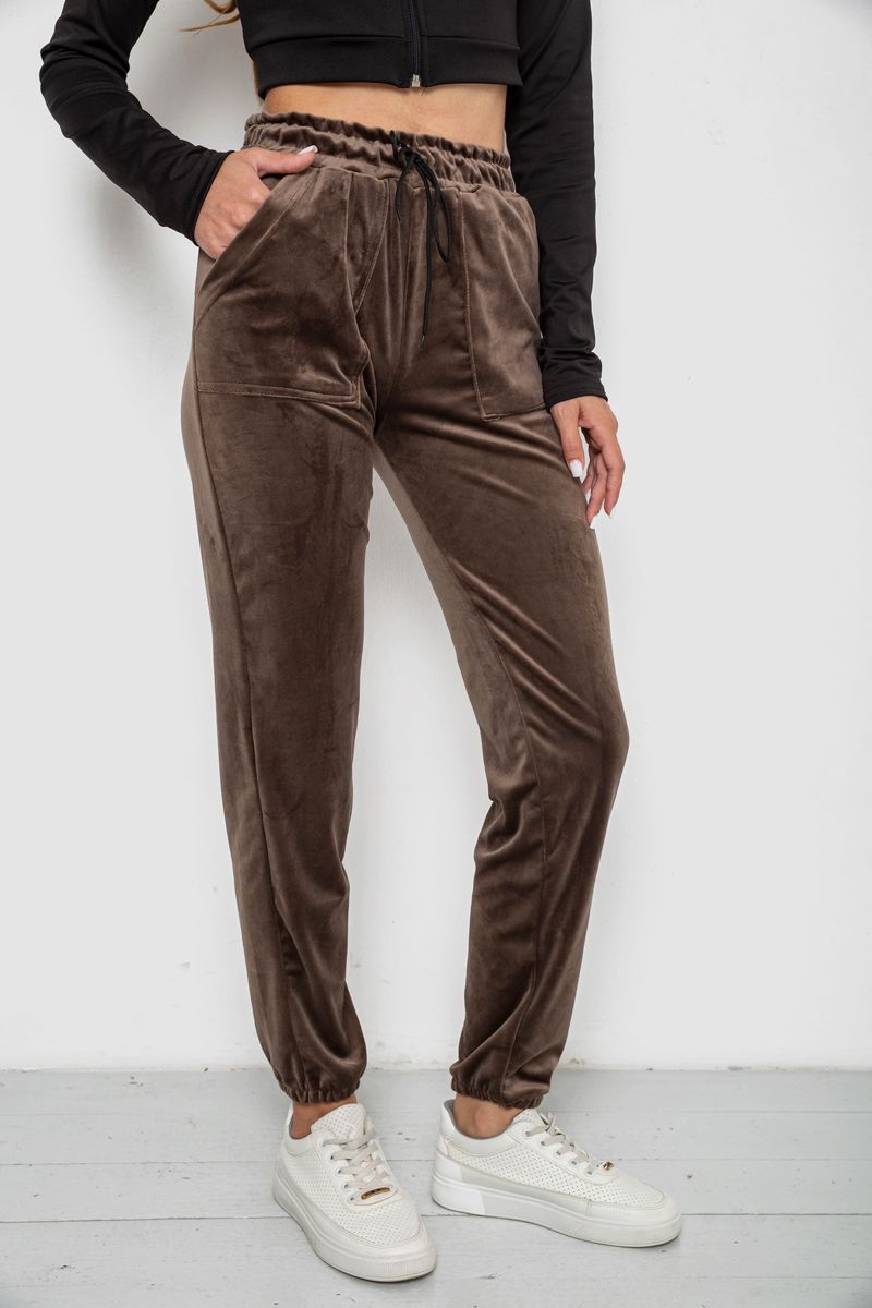 Штани жіночі велюрові, колір коричневий, 238R58168