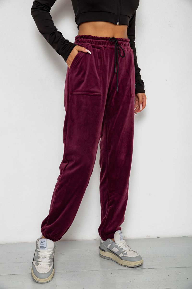 Спортивні штани велюрові жіночі на флісі, колір бордовий, 238R58645